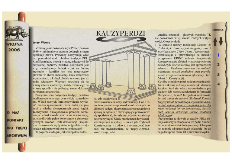 przedstawiciele władzy sądowniczej. Cóż z tego, że obywatel ma prawo dochodzić swych racji przed sądem, skoro zamiast rozstrzygnięcia