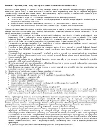 Rozdział VI Sposób wyboru i oceny operacji oraz sposób
