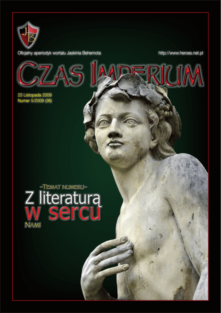 Oficjalny aperiodyk wortalu Jaskinia Behemota 23 Listopada 2009 Numer 5/2009 (36) ~Temat numeru~ Z literaturą w sercu Nami http://www.heroes.net.pl KONSKURS Weź udział i wygraj! Regulamin na stronie 18 Uwertura www.heroes.net.pl nr 5/2009 (36) Czas Imperium 03 Ogłoszenia I Ty możesz współtworzyć CI! Spis treści Uwertura 10 Recenzje gier Nebirios w drugiej części kompleksowego opisu gry Twierdza - Krzyżowiec. 03 Spis treści Ogłoszenia 04 Słowem wstępu... Tullusion radzi, jak za pomocą czasowników dokonać mordu na jesiennej zadyszce. --------------------Temat numeru 14 Z literaturą w sercu Nami Jaskinia 05 Meteoporadnik Kameliasz prezentuje, co to znaczy być mocno zjaskiniowanym meteopatą. 06 Recenzje książek + Caar Xoffek przekonuje, że jutro może rozpoczynać się już dzisiaj. + Nami dzieli się wrażeniami z rewelacji podejrzanych w pamiętnikach wampirów. + Niestrudzona Nami raz jeszcze sięgnęła po książkę - i okazało się, że to pamiętnik... rzemieślnika. 09 Ta muzyka nas przenika Mecku przekłada na język polski wrażenia płynące ze słuchania krążka grupy La Coka Nostra. --------------------Publicystyka 17 Neb wie Nebirios, alternatywnie do tematu numeru, także zajął się rzewnym zagadnieniem uczuć towarzyszących obcowaniu z literaturą. 19 Nie tylko dla Gerontów Tabris snuje rozważania na temat tych atrybutów wina, które smakosze cenią sobie najbardziej. 20 Kociołek z farbkami Dinah udowadnia, że jesienią w Mistycznych cieplutko robi się na sercu, widząc nowe prace. 22 Czas do Nami-słu Wrażenia z podróży Nami do Tokio, w kronikach zapisane. Okładki książek zaczerpnięte ze strony: http://www.ksiazki.wp.pl Lubisz pisać i piszesz poprawnie? Masz dużo pomysłów? Chcesz pomóc? Zgłoś się! Tutaj dostępna jest lista działów, które nie mają jeszcze swojego opiekuna. Piszesz dobrze, ale brakuje Ci czasu, by móc robić to regularnie? Nie szkodzi - każda pomoc się przyda. Czekamy na wiadomość od Ciebie! Do Jamy Strategów czas... Jeżeli masz zapał do pracy, chęci oraz w pewnej mierze odpowiada ci Heroes IV możesz ucieleśnić te cechy. Poszukiwane są osoby do pracy nad działem Heroes IV w Jaskini. W celu dowiedzenia się szczegółów skontaktuj się z Meckiem (GG: 4570306) bądź z Konstruktorem (GG: 7744822). Laysander ogłasza konkurs! Fabryka chipsów Lays rozpoczyna konkurs na najciekawszy nowy smak chipsów. Zgłoszenia nowych smaków należy wysyłać na priva do Laya. Nagrodą jest drukowanie pod napisem “Lays” nicku zwycięzcy. Informacje końcowe Chcesz zamieścić swoje ogłoszenie lub inną informację na łamach “Czasu Imperium!”? Masz uwagi, sugestie związane z “Czasem!”? Napisz: [email protected] Co sądzisz o najnowszym "Czasie Imperium"? Napisz nam o tym na forum! 04 nr 5/2009 (36) Czas Imperium Uwertura www.heroes.net.pl Nie ma lekko Późne jesienne tygodnie, nieustannie męcząc jednostajnie szarym firmamentem, pod którym uwijają się jak w ukropie tysiące ludzików (wariant miejski) albo też szaruga rozlewająca się nad więdnącymi resztkami łąk, polan, działek czy pastwisk (wersja pozamiejska) sprawiają, że żyć się cokolwiek odechciewa. I także pisać. SŁOWEM WSTĘPU... Tullusion Ż ycie w XXI-wiecznym światku wszak nie zawodzi – to niewyczerpane źródełko natchnienia dla tych nieco bardziej, ale i mniej podsycanych spostrzeżeniami tekścików. Wiercąc ręką w kieszeni szlafroka, znalazłem wciąż jeszcze świeżą notatkę zapisaną na marginesie myśli. Przytoczę jej treść. Usiadłem sobie wygodnie przed filiżanką herbaty w jednej z warszawskich uroczo przyciasnych kawiarenek, aby rozważyć powyższe pytanie w oparach gorącego wywaru. Problem z pozoru błahy i prozaiczny, a jednak włażący jakoby drzazga w miękkie śródstopie studenckiej egzystencji, jeżeli pozwolą Państwo posłużyć się tak niezdarną metaforą. Kujoństwo istniało, jest i znajdzie swój koniec prawdopodobnie wraz z generalnym Wielkim Kolapsem gatunku ludzkiego. Postrzeganie Jesienne impresje mogą przyjąć podobne powyższemu formy... codziennej nauki (nie w sensie abstrakcyjnym, jako całości obszaru badawczego pewnej dziedziny, ale codziendefinicji. Dlatego w kujoństwie najważniejsze zaiste jest nie przeności przebijającej w żmudnym procesie przyswajania wiedzy) znaczenie, a sama czynność. Matrycą teleologiczną w tym przyprzez pryzmat rywalizacji stawia pytanie oczywiste - jaki jest cel padku jest sam środek, sposób. tego wyścigu? Warunkowany przez indywidualne preferencje, Pryncypium to zawiera aliści jeden podstawowy błąd metojest zgoła nieprzystający do jakiejkolwiek jedno-jednoznacznej dologiczny, dzięki pomocy którego bardzo łatwo rozróżnić kujona od typowego, a niekiedy - wręcz wzorcowego studenta. Pierwsza grupa czyta, aby wiedzieć, druga natomiast wie, co czytać (aż chciałoby się rzec: dzięki wszczepionemu światłu rozumu...). I na tym zasadza się zasadniczy prymat zdrowego Bardzo łatwo rozróżnić kujona podejście do edukacji akademickiej, któremu hołdowałem i nie zamierzam się wyrzekać, mimo podwojonych obowiązków. od typowego, a niekiedy Jednego jestem pewien - kujoni nie zostali powołani do życia i wręcz wzorcowego studenta. działania przez Wszechmocnego w pierwszym tygodniu kreacji. Ale dość już o tym nie najprzyjemniejszym zjawisku. Nie Pierwsza grupa czyta, aby ma lekko – oczekiwania czytelników, rozbudzone dodatkowo wiedzieć, druga natomiast wie, ostatnim, wyjątkowo bogatym i strojnym numerem „Czasu Imperium”, muszą zostać chociaż w części zaspokojone. 36 co czytać (aż chciałoby się rzec: wydanie aperiodyku jest niestety uboższe – pochłonięci obowiązdzięki wszczepionemu światłu kami szkolnymi, naukowymi czy też zwykłą prozą życia pisaną przez godziny pracy redaktorzy nie byli w stanie wykrzesać z rozumu...). siebie równie ogromnych pokładów inspiracji twó