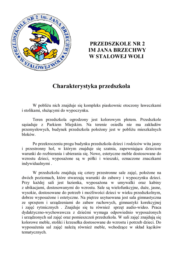 Charakterystyka przedszkola - Przedszkole nr 2 im. Jana Brzechwy