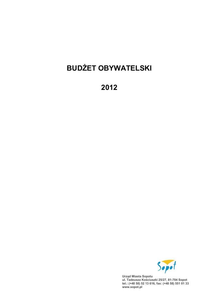 BUDŻET OBYWATELSKI 2012 Urząd Miasta Sopotu ul. Tadeusza Kościuszki 25/27, 81-704 Sopot tel.: (+48 58) 52 13 616, fax: (+48 58) 551 01 33 www.sopot.pl ZADANIA OGÓLNOMIEJSKIE 1. Segregacja odpadów komunalnych Podstawiono 24 pojemniki o pojemności 1100 litrów przeznaczone do segregowania odpadów (plastik, szkło, makulatura) m.in. przy ulicach Ceynowy 16, Winieckiego na wysokości Majkowskiego, Pułaskiego 5-11, Mickiewicza (naprzeciwko DPS), Książąt Pomorskich (naprzeciwko nr 14), Sobieskiego przy szalecie miejskim, Kopernika na rogu z ul. Armii Krajowej oraz przy skrzyżowaniu ulic Chrobrego i Sobieskiego. Ponadto dla uzupełnienia taboru maszynowego do obsługi segregacji został zakupiony ekologiczny hakowiec do przewozu kontenerów zasilany gazem ziemnym o wartości 156 tys. zł 2. Dofinansowanie i modernizacja schroniska dla zwierząt (dofinansowanie, modernizacja i prace projektowe) Z Towarzystwem Opieki na Zwierzętami, któremu w styczniu 2011 r. powierzono zadanie prowadzenia schroniska, podpisano w styczniu 2012 r. aneks do umowy na kwotę 400 tys. zł. 40 tys. w tej kwocie zostało przeznaczone na wykonanie bieżących remontów. Obecnie trwa procedura przygotowywania Miejscowych Planów Zagospodarowania Przestrzennego. 3. Remont ul. 23 Marca wraz z pętlą autobusową, ścieżką rowerową, oświetleniem i chodnikiem W 2012 roku zakończono prace projektowe, których koszt wyniósł 457 tys. zł. W projekcie Budżetu Miasta na rok 2014 zarezerwowano ponad 20 mln zł na remont ul. 23 Marca oraz ponad 3,7 mln zł na budowę ścieżki rowerowej wzdłuż tej ulicy. 4. Wsparcie spółdzielni mieszkaniowych oraz małych firm sopockich prowadzących działalność w Sopocie w zakresie pozyskiwania środków zewnętrznych, promocji, targów. W 2012 roku sopockie Centrum Przedsiębiorczości w ramach swoich możliwości świadczyło usługi doradcze w celu pozyskania środków zewnętrznych. Ponadto Wydział Strategii Rozwoju Miasta udzielił informacji na temat możliwości pozyskiwania środków zewnętrznych Urząd Miasta Sopotu ul. Tadeusza Kościuszki 25/27, 81-704 Sopot tel.: (+48 58) 52 13 616, fax: (+48 58) 551 01 33 www.sopot.pl przez Spółdzielnie Mieszkaniowe. Dzięki działaniom Miasta Sopotu wpisano rewitalizację obszarów mieszkaniowych (Spółdzielni Mieszkaniowych) do Strategii Województwa Pomorskiego. Władze Sopotu zabiegały także aby SM mogły ubiegać się o środki zewnętrze w ramach instrumentu ZIT. 5. Połączenie autobusowe między Sopotem a Gdańskiem – dofinansowanie istniejącej linii Wprowadzono dodatkowy wariant połączenia linią 122. Autobus kursujący ul. Łokietka umożliwił łatwą i szybką przesiadkę osobom podróżującym dalej liniami tramwajowymi 2, 6, 8, 12 w Gdańsku. 6. Ścieżka rowerowa od ul. 3 Maja wzdłuż skarpy, obok szkoły podstawowej nr 8 do ul. Polnej – prace projektowe W ramach zadania wykonano prace projektowe. Ponadto w projekcie Budżetu Miasta na rok 2014 zarezerwowano 1,5 mln zł na realizację inwestycji. Koszt prac ponad 43 tys. zł 7. Zagospodarowanie terenów przy ul. Bitwy pod Płowcami i ul. Polnej z przeznaczeniem na tereny rekreacyjne i do uprawiania sportu (błonia sportowe) Zgodnie z założeniami zadanie realizowanie jest etapami. W 2012 roku przygotowano projekt zagospodarowania błoni, przeprowadzono badania, wydana została opinia geologiczna. Ponadto wykarczowano drzewa. Podpisana została także umowa z Caritasem i organizacjami sportowymi, której celem jest realizacja treningów aktywności społecznozawodowej młodych osób zagrożonych wykluczeniem społecznym. Osoby zatrudnione w ramach treningu przeprowadziły i nadal wykonują szereg robót i prac na Błoniach. Koszt ponad 650 tys. zł 8. Modernizacja stadionu Ogniwa Zakończono prace projektowe i planistyczne (m.in. Rada Miasta Sopotu uchwaliła Miejscowy Plan Zagospodarowania Przestrzennego dla tego terenu). Ponadto trwają starania, aby wpisać zadanie do Programu Rozwoju Infrastruktury Sportowej Województwa Pomorskiego. Zgodnie z wcześniejszymi deklaracjami inwestycja realizowana będzie po uzyskaniu środków zewnętrznych. Ta inwestycja (wraz z kosztem jej realizacji) wykracza Urząd Miasta Sopotu ul. Tadeusza Kościuszki 25/27, 81-704 Sopot tel.: (+48 58) 52 13 616, fax: (+48 58) 551 01 33 www.sopot.pl poza zapisy rezolucji Rady Miasta Sopotu dot. Budżetu Obywatelskiego, jednak z uwagi na jej znaczenie dla mieszkańców dokładane są wszelkie starania, by ją zrealizować. Koszt prac projektowych i planistycznych – ok. 120 tys. zł. 9. Remont ul. Kolberga (wraz ze ścieżką rowerową oraz przebudową miejsc parkingowych) przy wsparciu finansowania zewnętrznego (środki unijne). W ramach zadania rozebrano nawierzchnię jezdni asfaltowej i chodników z płytek chodnikowych. Następnie wykonano niezbędne koryto z profilowaniem i zagęszczeniem podłoża oraz nawierzchnię ścieżki rowerowej z asfaltu drogowego SMA (na podbudowie z kruszywa kamiennego łamanego). Przebudowa objęła powierzchnię 2 093,50 m2. Wykonano również chodnik z kostki betonowej na podsypce cementowo-piaskowej o powierzchni 1319,30 m2. Ponadto wykonano nawierzchnię miejsc postojowych z kostki brukowej na podbudowie z kruszywa łamanego o powierzchni 608 m 2 oraz nawierzchnię jezdni z betonu asfaltowego na podbudowie z kruszywa łamanego o powierzchni 791 m 2. Zamontowano również bariery ochronne oraz zamontowano słupki rozdzielające miejsca postojowe. Łączny koszt inwestycji to ponad 980 tys. zł. Urząd Miasta Sopotu ul. Tadeusza Kościuszki 25/27, 81-704 Sopot tel.: (+48 58) 52 13 616, fax: (+48 58) 551 01 33 www.sopot.pl OKRĘG NR 1 SOPOT CENTRUM 1. Remont schodów z ul. Jagiełły do ul. Sobieskiego Remont bieżący – polegał na wymianie zardzewiałych kątowników na obramowaniu stopnic, oraz uzupełnieniu konstrukcji betonowej stopnic i podstopnic zaprawą naprawczą. Uzupełniono wyłamaną część poręczy – koszt remontu