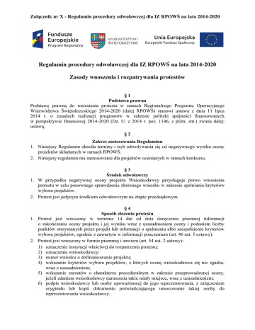 Regulamin procedury odwoławczej dla IZ RPOWŚ na lata 2014