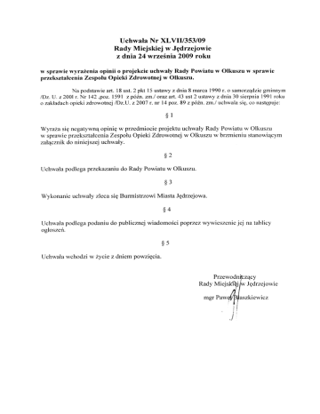 opinii o projekcie uchwaly Rady Powiatuw Olkuszu w sprawieprzeksztaicenia