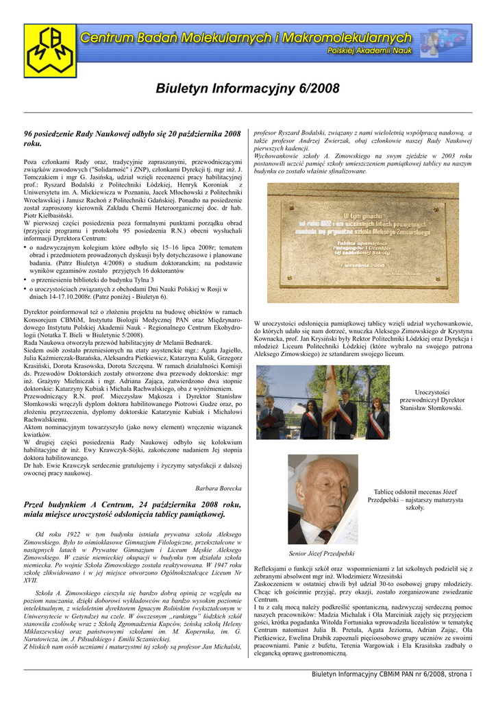 Biuletyn Informacyjny CBMiM PAN nr 6/2008, strona 1