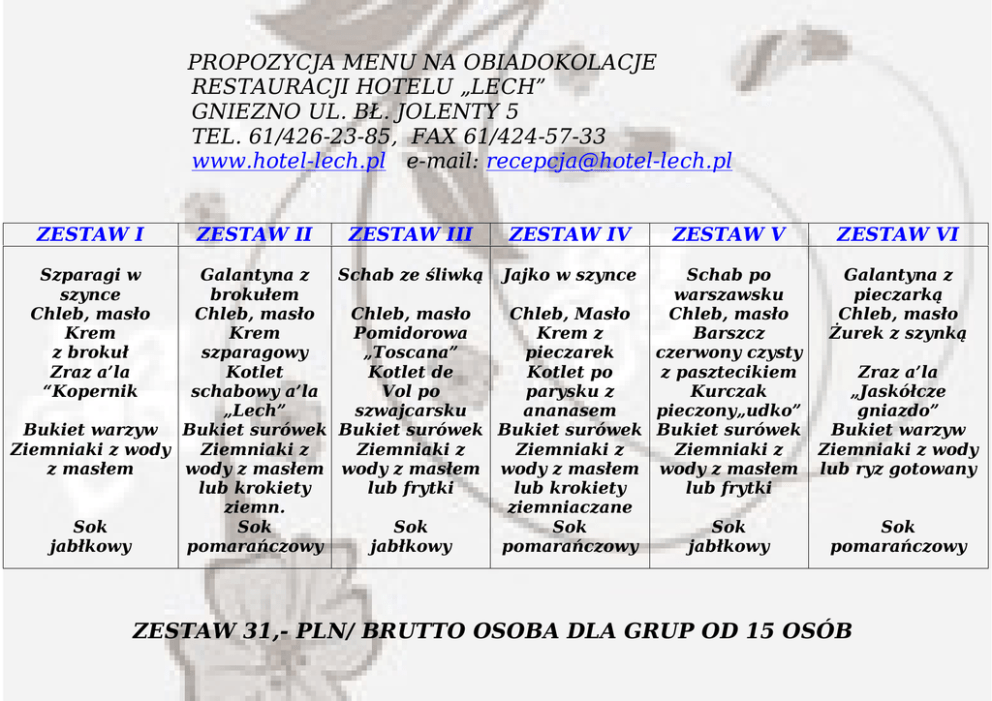 obiadokolacja - Hotel Lech, Hotel Gniezno