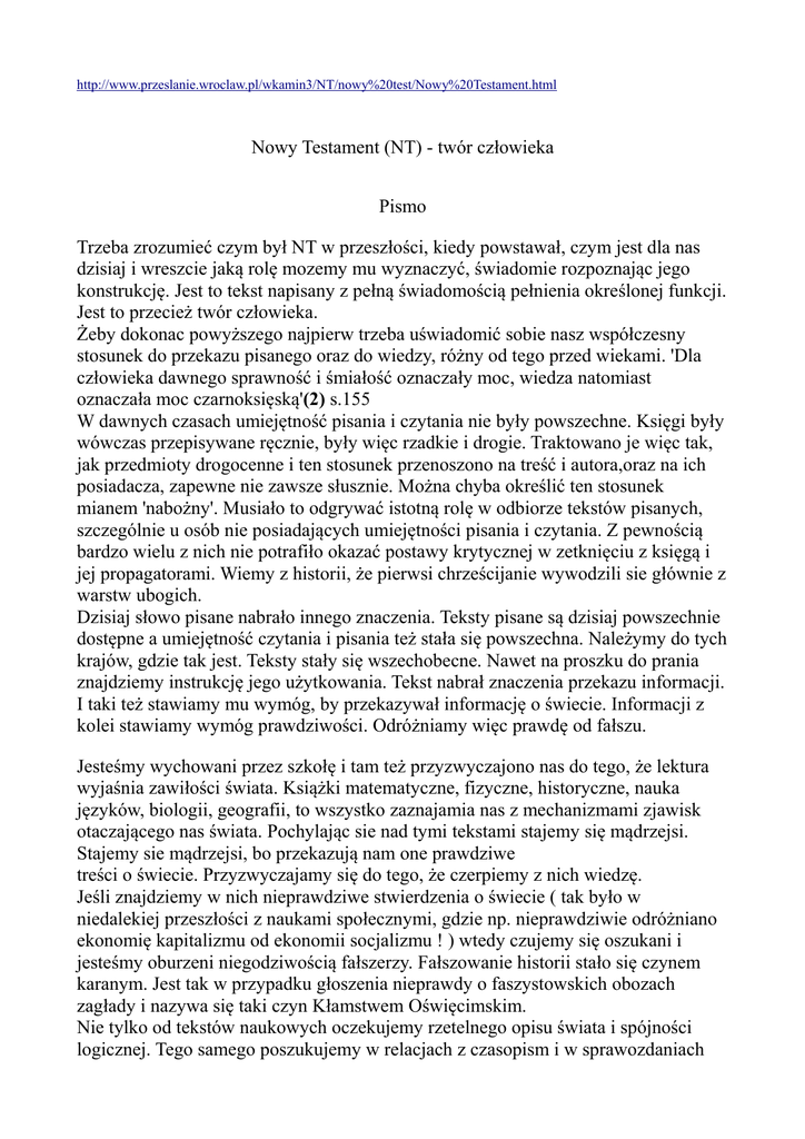 Nowy Testament (NT) - twór człowieka Pismo Trzeba zrozumieć