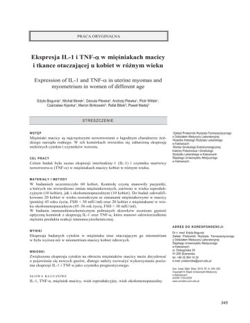 Ekspresja IL-1 i TNF- w mięśniakach macicy i tkance otaczającej u