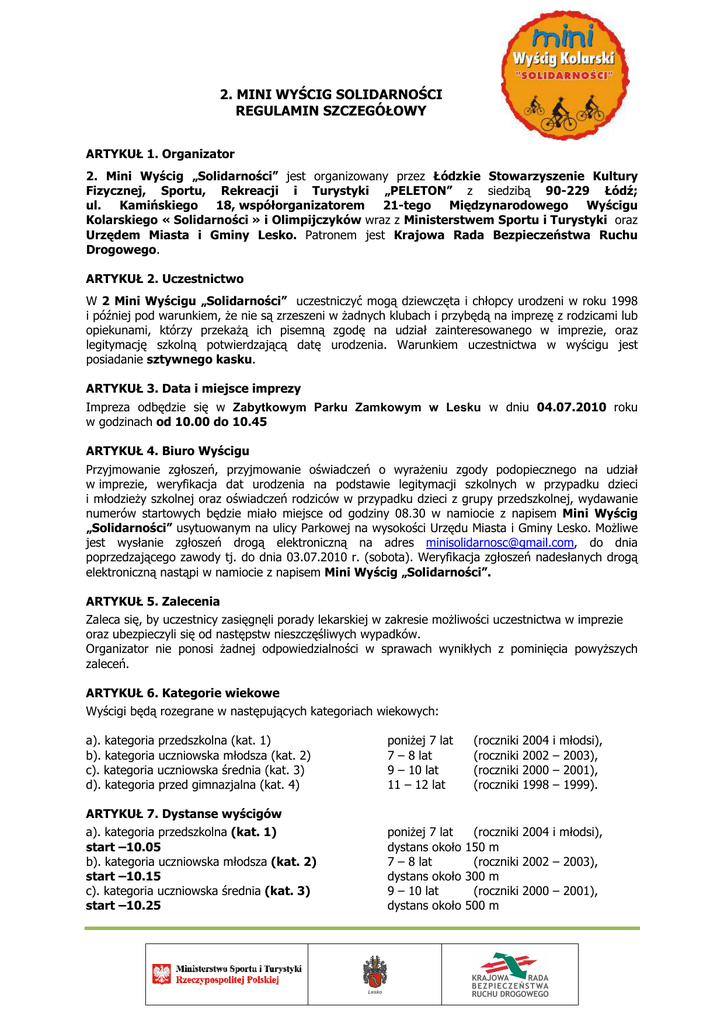 2. MINI WYŚCIG SOLIDARNOŚCI REGULAMIN SZCZEGÓŁOWY