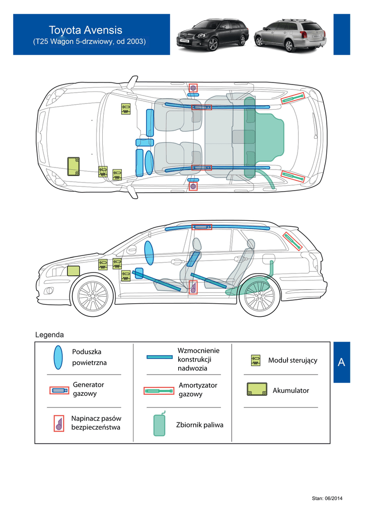 Poduszka powietrzna Wzmocnienie konstrukcji nadwozia Moduł sterujący Generator gazowy Amortyzator gazowy Akumulator Napinacz pasów bezpieczeństwa Zbiornik paliwa Stan: 06/2014
