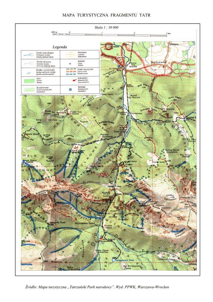 MAPA TURYSTYCZNA FRAGMENTU TATR Skala 1 : 30 000 Źródło: Mapa turystyczna „Tatrzański Park narodowy”. Wyd. PPWK, Warszawa-Wrocław