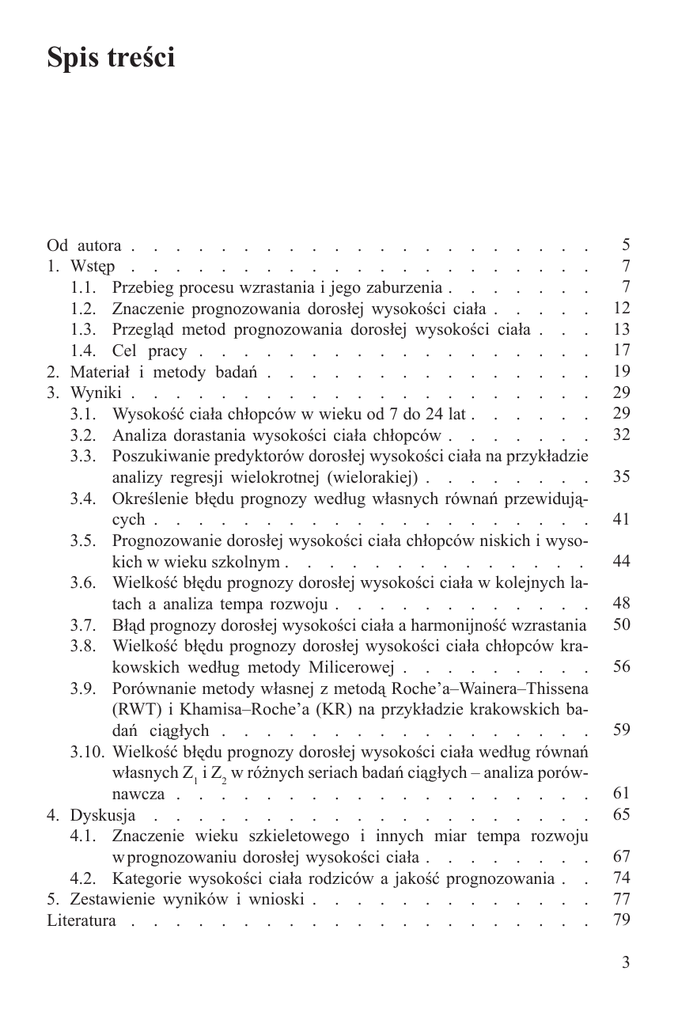 Spis treści Od autora . . . . . . . . . . . . . . . . . . . . . 1. Wstęp . . . . . . . . . . . . . . . . . . . . . 1.1. Przebieg procesu wzrastania i jego zaburzenia . . . . . . . 1.2. Znaczenie prognozowania dorosłej wysokości ciała . . . . . 1.3. Przegląd metod prognozowania dorosłej wysokości ciała . . . 1.4. Cel pracy . . . . . . . . . . . . . . . . . . 2. Materiał i metody badań . . . . . . . . . . . . . . . 3. Wyniki . . . . . . . . . . . . . . . . . . . . . 3.1. Wysokość ciała chłopców w wieku od 7 do 24 lat . . . . . . 3.2. Analiza dorastania wysokości ciała chłopców . . . . . . . 3.3. Poszukiwanie predyktorów dorosłej wysokości ciała na przykładzie analizy regresji wielokrotnej (wielorakiej) . . . . . . . . 3.4. Określenie błędu prognozy według własnych równań przewidujących . . . . . . . . . . . . . . . . . . . . 3.5. Prognozowanie dorosłej wysokości ciała chłopców niskich i wysokich w wieku szkolnym . . . . . . . . . . . . . . 3.6. Wielkość błędu prognozy dorosłej wysokości ciała w kolejnych latach a analiza tempa rozwoju . . . . . . . . . . . . 3.7. Błąd prognozy dorosłej wysokości ciała a harmonijność wzrastania 3.8. Wielkość błędu prognozy dorosłej wysokości ciała chłopców krakowskich według metody Milicerowej . . . . . . . . . 3.9. Porównanie metody własnej z metodą Roche’a–Wainera–Thissena (RWT) i Khamisa–Roche’a (KR) na przykładzie krakowskich badań ciągłych . . . . . . . . . . . . . . . . . 3.10. Wielkość błędu prognozy dorosłej wysokości ciała według równań własnych Z1 i Z2 w różnych seriach badań ciągłych – analiza porównawcza . . . . . . . . . . . . . . . . . . . 4. Dyskusja . . . . . . . . . . . . . . . . . . . . 4.1. Znaczenie wieku szkieletowego i innych miar tempa rozwoju w prognozowaniu dorosłej wysokości ciała . . . . . . . . 4.2. Kategorie wysokości ciała rodziców a jakość prognozowania . . 5. Zestawienie wyników i wnioski . . . . . . . . . . . . . Literatura . . . . . . . . . . . . . . . . . . . . . 5 7 7 12 13 17 19 29 29 32 35 41 44 48 50 56 59 61 65 67 74 77 79 3 Streszczenie . . . . Summary . . . . . Aneks . . . . . . Spis tabel w tekście pracy Spis rycin . . . . . Spis tabel w aneksie . 4 . . . . . . . . . . . . . . . . . . . . . . . . . . . . . . . . . . . . . . . . . . . . . . . . . . . . . . . . . . . . . . . . . . . . . . . . . . . . . . . . . . . . . . . . . . . 89 . 91 . 93 . 121 . 124 . 126