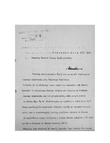 KUWiit L ****>• ^ 5 5 = J--*/ Szanowny Komitet P^mocy %doV .polskich w Poz7/ol§ sobie ponownie zalic sie na sposo'b traktowania -naszego miasteczka przy Szanownym Komitecie. Nietylko ,ze od dluzszego czasu wcale nie nadesiano nam zadnej zywnosci to dotychezas zadnego ubrania ani halerza na biednych naszego miasteczka nam nia przydzielono, mimo przyrseczenia s6*strony ¥go. Pa Dr. Niehtbergera na zjezdzie w Jasle dnia 24/8 Musze powtorzyc,ze miasteczko Bukowskb nalezy do najnedzniejszych dziur jest w nieurodzajnej "okclicy polczcne- cdciete cd swiata od.najblizszej stacyi kolejowej i miasta Sanoka cddalone o 17 kilcmetrow a furmanka do Sanoka kosztuje 120 K. fbkolicy jest stosunek do reszty ludnosci tego rodzaju ze niczego ^-!«**' r.'vvf*** ..* *.i|. .../;K'r«~:i-3^^^>^>r,*-iJ^T:r?!':----^---- . - • - — > Dla braku funduszow jest niemozliwem wyslanie delegata do Krakowa, jezeli to juz koniecznie jest potrzebnem/by ustnie przedstatvil to poiozenie naszyek biedakoW. ¥ Komitecie sanockim nie wsko'rac nie mozemy a czionkowie Komitetu nie tyle odnoszg. sie z niechecia. do naszego m ^ M ^ z l l a , ile faworyzuja. swoich miejscowyc% biedakow. W tych watunkach trudno mi|s|-e powstrzymac od zarzutu ze Szanovmy Komitet nie traktuje rownomiernie naszych biedako'ww stosunku do innych miasteczek . Prosze sat em, by Szanowny Komitet uwzglednil wyjatkdwa, ne'dse naszego miasteczka,ktore<juz wskutek naturalnego poiozenia znajduje sie w gorszych stosunkach ekonomicznych'-jak inne miejscowosci. i zechcial laskawie przyjsc z pomocy naszemu miasteczku. 0 udzielonej pomocy prosze zawiadomic tutejszy Komitet bezpcsrednio i ost&tecznie bysmy nie potrzebowali osobno o to targewae si§ w sanockim Komitecie 'dlatego ze w liscie Szanownego Komiteiiu izyrsiajciy^ jJst-_W3 r """". r/ -' w ; nt' .""~ B , jedynym przedstav*icielem tutejszej inteligencyi zmuszony b^de. pozostavdc sprawe. dobroczynnosci tutejszej, innym ludziom wzgl§dnie losowi.. Z wysokiem pov/azaniem za lokalny Komitet!. P K ?