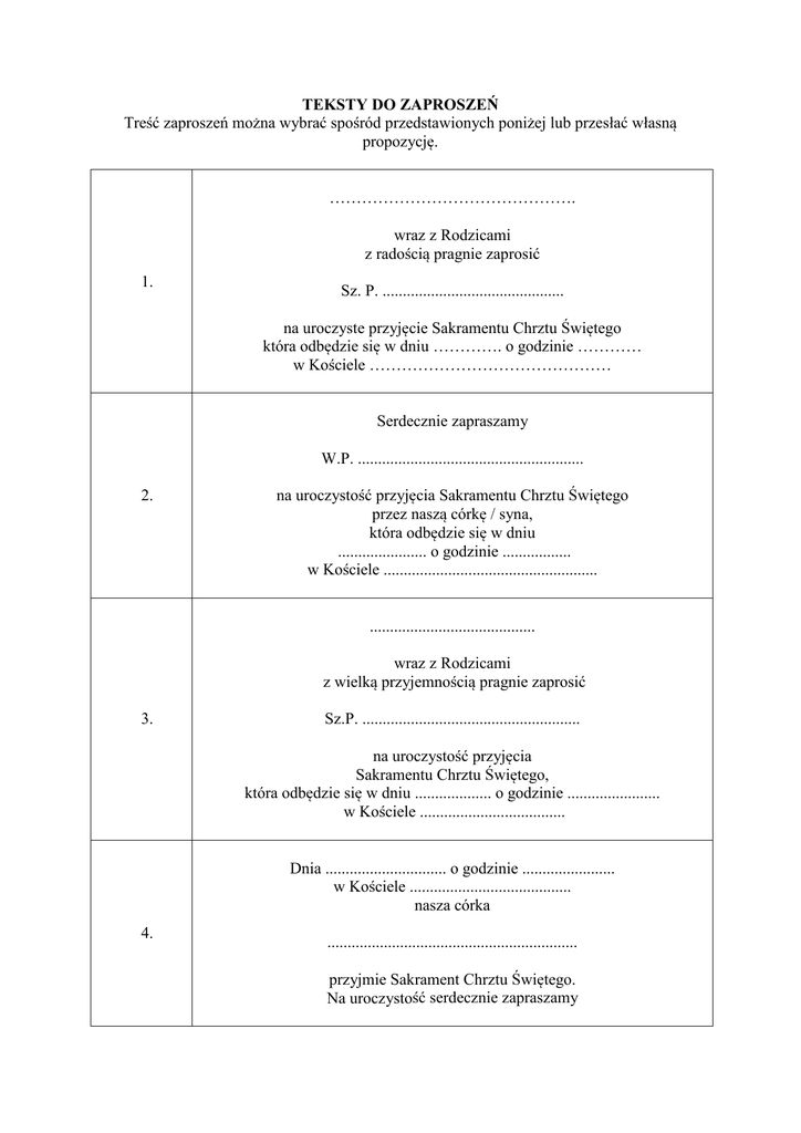 1. CHRZEST - TEKSTY DO ZAPROSZEN