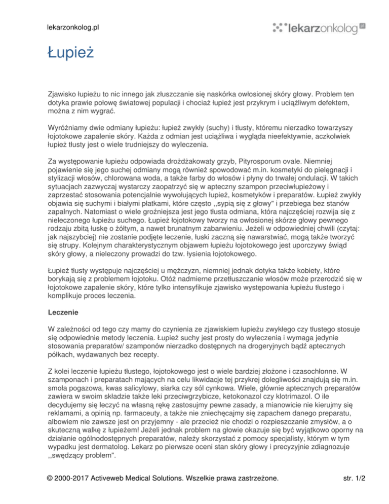 Łupież - Lekarzonkolog.pl