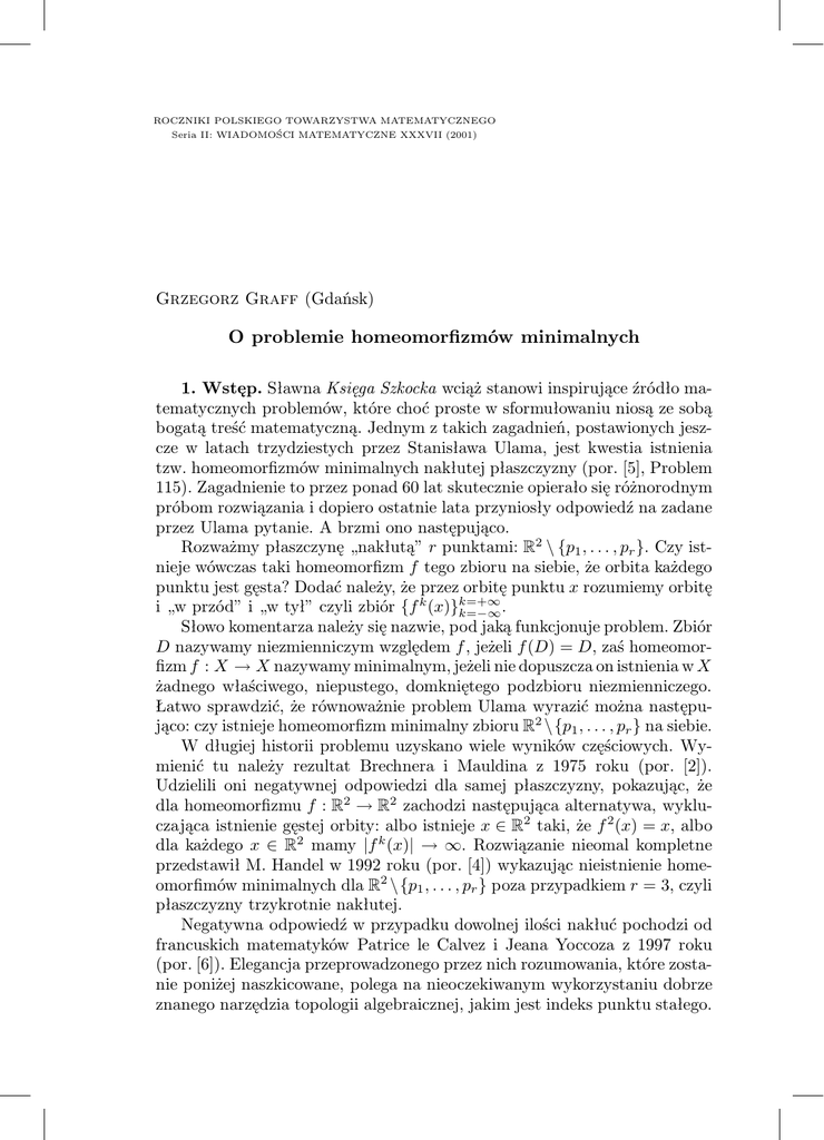 Seria II: WIADOMOŚCI MATEMATYCZNE XXXVII (2001)