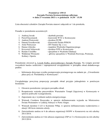 Protokół nr 159/13 Zarządu Powiatu Krotoszyńskiego odbytego w