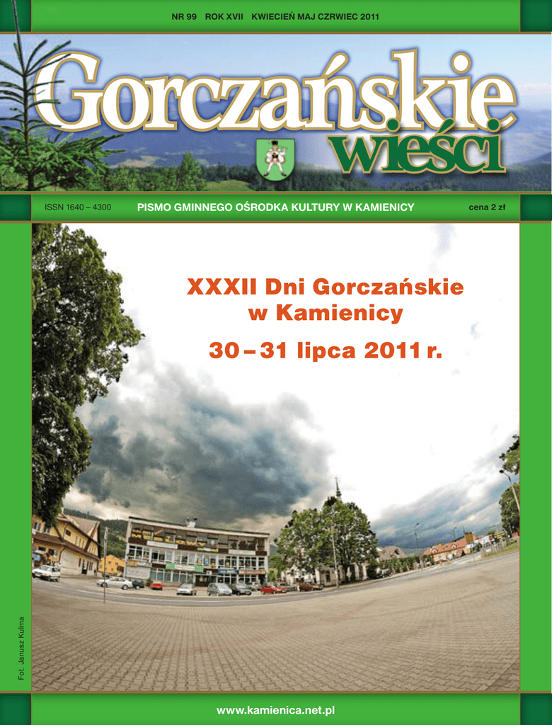 Nr 99 rok XVII kwiecień maj czrwiec 2011 Gorczańskie wieści Issn 1640 – 4300 Pismo Gminnego Ośrodka Kultury w Kamienicy XXXII Dni Gorczańskie w Kamienicy Fot. Janusz Kulma 30 – 31 lipca 2011 r. www.kamienica.net.pl cena 2 zł Zatrzymane w obiektywie Oficjalne otwarcie IŻ KĄCIK WIĘCEJ N czytaj strona 25 Przecięcie wstęgi kó ł podpisują Dyrek torz y sz ółpracy sp w o t en dokum Wpis do księgi pamiątkowej Poświęcenie obiektu Zaproszeni gośc wo szkół Partnerst czytaj strona 32 Wspólna wycieczka 2 Gorczańskie Wieści kwiecień maj czerwiec 2011 ie Spis treści Od redakcji Wczoraj Kamienicy • Sześć wieków parafii w Kamienicy............................4 Wczoraj i dziś Kamienicy • Człowiek – najlepsza inwestycja...............................6 • Zawody Sportowo-Pożarnicze..................................6 • Nowy Zarząd Oddziału Gminnego OSP w Kamienicy 7 • Pijalnia Wód Mineralnych w Szczawie......................7 Dziś i jutro Kamienicy • Elektroniczna rejestracja bezrobotnych....................9 • Projektowanie wodociągu.........................................9 • Z sesji Rady Gminy..................................................10 • Nowelizacja ustawy!................................................11 Rozmowa z … • Wywiad ze starostą dożynek wojewódzkich – panem Michałem Mikołajczykiem.......................................12 • Wywiad ze starościną dożynek wojewódzkich panią Marią Błachut.................................................13 • Budowa chodnika w Kamienicy zakończona..........14 Wieści ze Starostwa • Po raz kolejny powiat limanowski najlepszy!..........15 • Modernizacja kształcenia zawodowego w Małopolsce...........................................................15 Wieści z Sejmu • Polska bardziej widoczna w Europie i na Świecie..16 • Czy powstanie uzdrowisko w Szczawie?................16 • Posła Tadeusza Patality wszędzie pełno, . ............17 Dla rolników • Rola trwałych użytków zielonych............................18 • Obowiązki rolników wynikające z ustawy o ochronie roślin.........................................................................19 Z życia Parafii • Boże Ciało................................................................20 • Festyn Parafialny.....................................................20 • Sukces Chóru..........................................................21 • Jubileusz 25-lecia kapłaństwa ks. proboszcza Jana Betleja................................... 22 • Dostałem piękny prezent….................................... 23 Kultura • Święto piękna...........................................................24 • Powstanie Muzeum ................................................24 • Życzenia dla mam....................................................24 • „Skrzat titelitury” na Dzień Dziecka.........................24 • Podwójne otwarcie..................................................25 • Festiwal Dzieci i Młodzieży w Mosbach..................25 • Biblioteka miejscem informacji lokalnej..................25 • Karpacki Festiwal Dziecięcych Zespołów Regionalnych w Rabce-Zdroju................................26 • Konkurs młodych muzyków.....................................27 • Z partnerską wizytą.................................................27 Różne • Dzień Dziecka w Szkole Podstawowej w Zalesiu...28 • Poznaj tradycję....................................................... 29 • Konkurs Języka Angielskiego................................ 30 • Kronika policyjna.................................................... 30 • Chrońmy Przyrodę...................................................31 • Wszechobecny projekt........................................... 32 Sport • Ogólnopolski Turniej Piłki Nożnej – GORCE 2011.33 • Spartakiada Młodzieży........................................... 33 • Złoty medal mistrzostw Europy.............................. 33 kwiecień maj czerwiec 2011 Gorczańskie Wieści 3 Wczoraj Kamienicy (6) Przemysław Stanko Sześć wieków parafii w Kamienicy Opisany w poprzednich częściach konflikt mieszkańców Kamienicy z miejscowym proboszczem zakończony ugodą zawartą u furty klasztornej w Starym Sączu, na nowo wybuchł z początkiem 1738 r. P oddani klasztoru próbowali, mimo zakazów ksieni, produkować alkohol w swoich domach, czy też spożywać go w karczmach. Ksieni i tym razem zdecydowanie zareagowała, zakazując pod wieloma karami łamania dotychczasowych zarządzeń. Oczywiście sprawa ta nie była jedyną do rozwiązania w XVII-XVIII w. w życiu kamienickiej parafii. Z ogromną siłą, jeszcze w latach 70tych XVII w. zaistniał konflikt o wypas owiec i hale z mieszkańcami Poręby Wielkiej i Mszany Górnej. Rozpoczął się on w 1676 r. i trwał kilkanaście lat. W sprawę zaangażował się starosta mszański, sąd grodzki sądecki, a nawet Trybunał Koronny w Lublinie. Osią sporu była granica dóbr klasztornych, którą próbowali mieszkańcy Poręby i Mszany zanegować. Przed sądem zeznawali wójtowie Kamienicy i Zbludzy, liczni mieszkańcy obu wsi, a także ksieni dostarczała wiarygodnych dokumentów, co do stanu faktycznego włości latyfundium starosądeckich klarysek. Ostatecznie sąd grodzki sądecki w 1688 r. ustalił granicę na rzece Kamienicy od jej źródeł, a następnie od Rzek grzbietem Beskidu Wyspowego aż do góry Cichoń nad Zalesiem. Kamieniczanie, niejako przy okazji, uregulowali sobie granicę z Ochotnicą, wsią królewską w starostwie czorsztyńskim, nadmieniając, że Klenina pozyskana została przez nich w 1624 r. legalnie, co potwierdzili sami mieszkańcy Ochotnicy. Granica ta pokrywała się już w końcu XVII w. z obecną granicą miedzy tymi gminami. Co do wsi, graniczących od południa z Kamienicą i Zbludzą, tj. z Zabrzeżem, Wolą Piskuliną i Wolą Kosnową, nic nie słychać o jakic