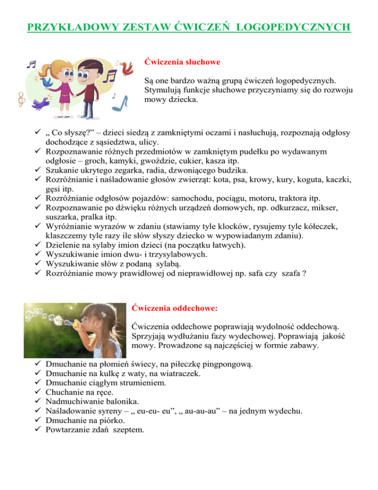 PRZYKŁADOWY ZESTAW ĆWICZEŃ LOGOPEDYCZNYCH