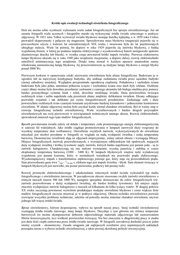 Krótki opis ewolucji technologii oświetlenia fotograficznego Dziś nie