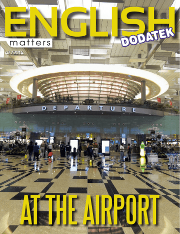 matters 47 /2014 K E T A DOD AT THE AIRPORT matters kieszonkowy poradnik językowy Language Guide At the Airport Dear Readers, Welcome to English Matters’ airport language pocket guide. This time we are going to take you around the airport, irrespective of whether it will be a short or long-haul flight. This guide comprises vocabulary and phrases that will definitely turn out to be useful during plane travel. So, if you want to be sure that you know what to say in each and every situation, come with us to the airport, get on board, then leave the airport with the English Matters guide in your pocket. We wish you a safe and enjoyable flight! irrespective of sth | bez względu na coś long-haul | dalekiego zasięgu, daleki (lot) to comprise sth | zawierać coś, obejmować coś to turn out | okazać się board | pokład Kieszonkowy poradnik językowy jest bezpłatnym dodatkiem do English Matters nr 47/2014. Opracowanie: Katarzyna Szpotakowska Korekta: Graham Crawford Colorful Media ul. Lednicka 23, 60-413 Poznań tel. 61 833 63 28, [email protected] Zdjęcie na okładce: Eddie Tay English Matters 47|2014 Airports in pictures flight schedule check-in area schedule | harmonogram 3 English Matters 47|2014 check-in desks airport trolley check-in desk | stanowisko odprawy trolley | wózek na kółkach 4 English Matters 47|2014 duty-free shops currency exchange duty-free | bezcłowy currency exchange | kantor wymiany walut 5 English Matters 47|2014 departure lounge cockpit departure lounge | hala odlotów 6 English Matters 47|2014 flight attendant aisle flight attendant | steward/stewardesa aisle | przejście 7 English Matters 47|2014 seats with seatbelts tray table seatbelt | pas bezpieczeństwa tray | taca 8 English Matters 47|2014 overhead compartment/locker/bin life-jacket 9 English Matters 47|2014 airline safety card runway 10 English Matters 47|2014 control tower baggage carousel 11 English Matters 47|2014 at customs arrival hall customs | odprawa celna 12 English Matters 47|2014 Airport Announcements · Flight XYZ is now boarding. Would all passengers proceed to gate … · This is the final call for passengers on flight 1234 to XYZ. Please proceed to gate 6 immediately. · Flight XYZ has been cancelled. · Flight XYZ has been delayed. · Attention, passengers on Polish Air flight 123 to London. The departure gate has been changed. The flight will now be leaving from Gate 12. · Would passenger John Doe please come to... · Could Mr/Mrs/Miss/Ms Doe please report to desk 23 urgently. · This is the final call for flight XYZ to … · ...please make your way to Gate 6. · Please proceed to gate number 7. · Please do not leave your bags unattended at any time. Checking in · Check-in clerk: · Can/May I see/have your ticket, please? · I’m afraid your passport has expired. · How many bags are you checking? · Will you be bringing a carry-on bag? · I’m afraid that bag exceeds the size restrictions. · Would you like an aisle or a window seat? · You’ll be boarding at Gate 3. · Please be at the gate thirty minutes before your scheduled flight. · Have you got any other luggage? · Have you got much hand luggage? · Do you need any tags for your luggage? to board | wsiadać do czegoś immediately | natychmiast cancelled | odwołany delayed | opóźniony attention | uwaga departure | odlot urgently | pilnie unattended | bez opieki to check | tu: odprawiać carry-on bag | AmE bagaż podręczny to exceed sth | przekraczać coś window seat | siedzenie przy oknie hand luggage | bagaż podręczny tag | przywieszka 13 English Matters 47|2014 · Here is your boarding pass. · You have an economy-class/business-class ticket. · Your flight is expected to take off on time. · Your flight has been delayed by one hour. · I’m afraid you’re too late to check in. · You are departing Warsaw at 3 pm on flight 123. · Boarding begins at 4 pm at gate 123. · Be at the gate prior to boarding time. · Your luggage is overweight. · Enjoy your flight. Dialogues: heck-in clerk: Can I see your ticket please? C Traveller: Sure, here is my e-ticket. Check-in clerk: Thank you. How much luggage do you have? Traveller: One rucksack. Could I take it as my hand luggage? Check-in clerk: I’m afraid it is too big. Here is your boarding pass. You’ll need to show it again at the gate. Traveller: Thank you. raveller: Is this the right desk? My flight is XYZ. T Check-in clerk: Yes, that’s right. May I see your passport and your ticket, please? Traveller: Here you are. Check-in clerk: Thank you. Could you please put your luggage on the conveyor belt? Traveller: Sure. Check-in clerk: Here is your boarding card. The plane is boarding in 40 minutes. Have a nice flight. Traveller: Thank you. On board Flight attendant: · Please take your seat. · Welcome on board. boarding pass/card | karta pokładowa to take off | wystartować (samolot) on time | na czas prior to sth | przed czymś overweight | z nadwyżką bagażu rucksack | plecak conveyor belt | taśmociąg bagażowy 14 English Matters 47|2014 · Would you like something to drink? · Would you like a snack? · What can I get you, madam? · Would you like still or sparkling water? · What’s the problem/matter? · Can I help you? · Did you request a special meal? · What can I do for you? · Can I get you anything else? · I’m afraid we’ve only got apple juice today? · I’m sorry but we’ve run out of cheese. · Don’t worry, you’ll be fine. · I will be right back. · Of course. · Certainly. · I’ll get it for you. · I’ll find out for you. · I’ll get you a blanket. · Can I see your boarding pass? · Can I look at your seat number, please? · Could I please see your boarding pass? · Please would you sit here for a moment? · Would you follow me, please? · Would you please turn off your mobile phone? · I’m afraid we are busy right now. Could you wait a moment? · I’ll get back to you. I promise. · Is everything all right? · The h