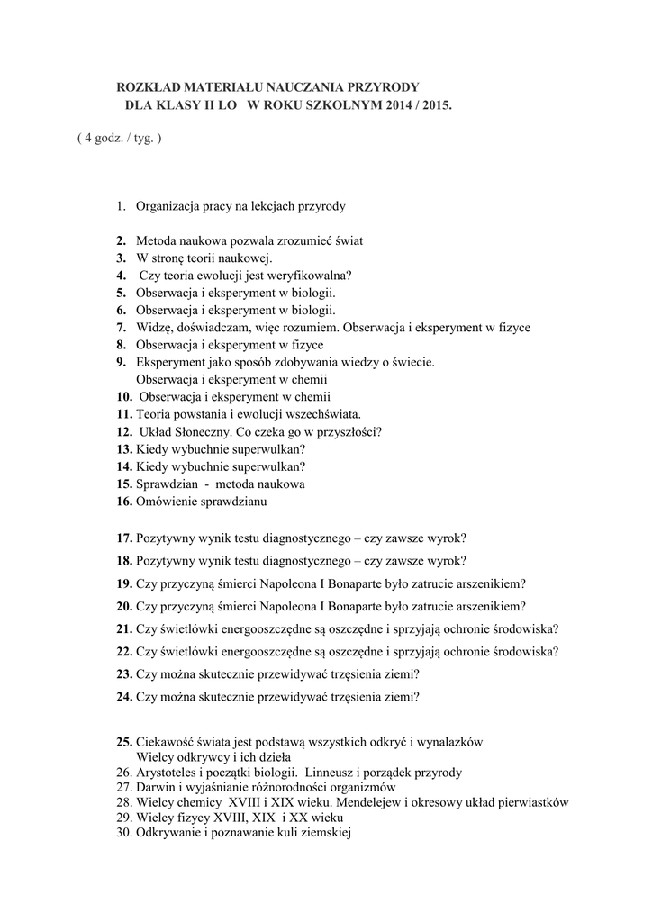 ROZKŁAD MATERIAŁU NAUCZANIA PRZYRODY DLA KLASY II LO