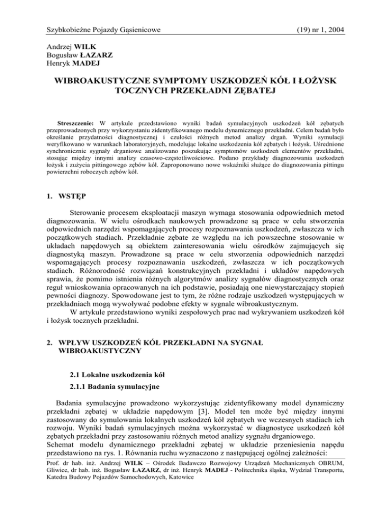 w diagnozowaniu lokalnych uszkodzeń przekładni zębatych. Szybkobieżne Pojazdy