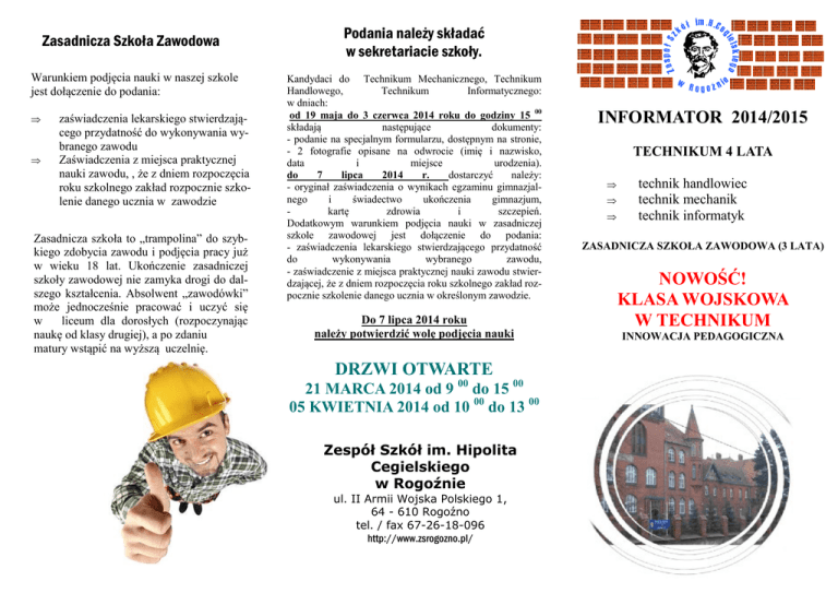 informator 2014/2015 nowość! klasa wojskowa w technikum drzwi