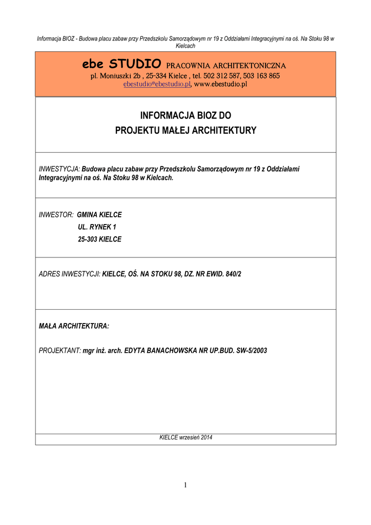 INFORMACJA BIOZ DO PROJEKTU MAŁEJ ARCHITEKTURY