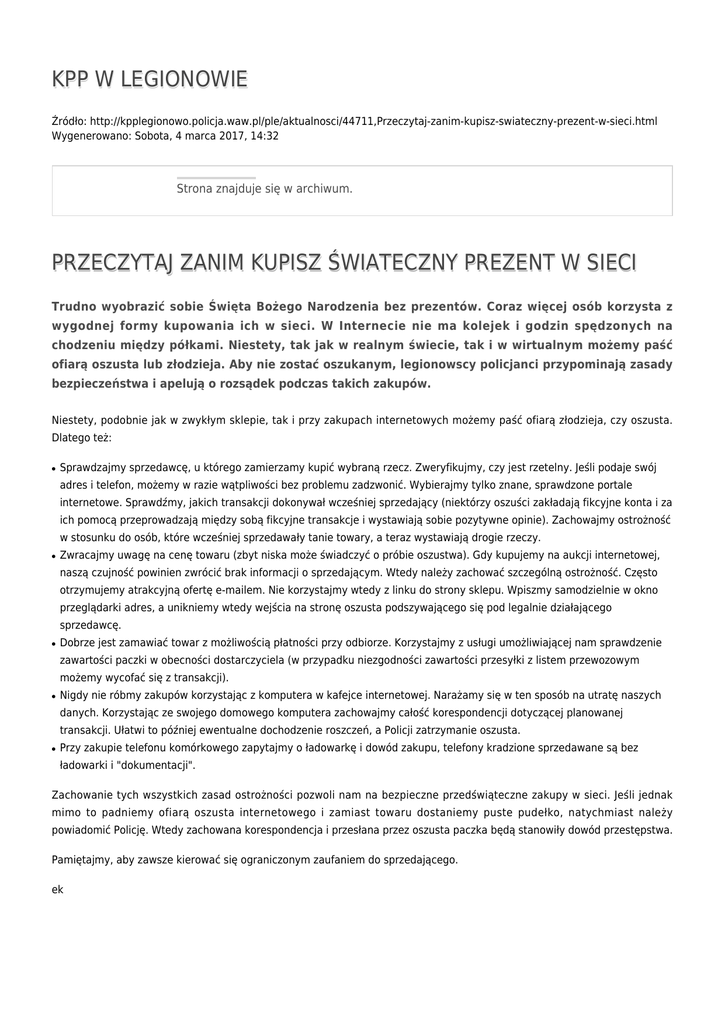 KPP W LEGIONOWIE PRZECZYTAJ ZANIM KUPISZ ŚWIATECZNY