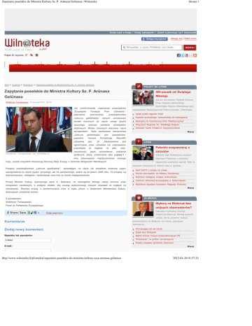 Zapytanie poselskie do Ministra Kultury Sz. P. Arunasa Gelunasa