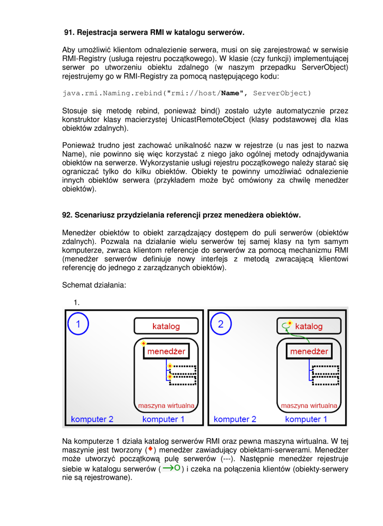 91. Rejestracja serwera RMI w katalogu serwerów. Aby umoliwić
