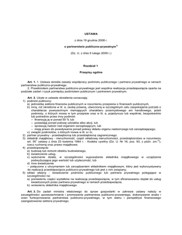 USTAWA z dnia 19 grudnia 2008 r. o partnerstwie publiczno