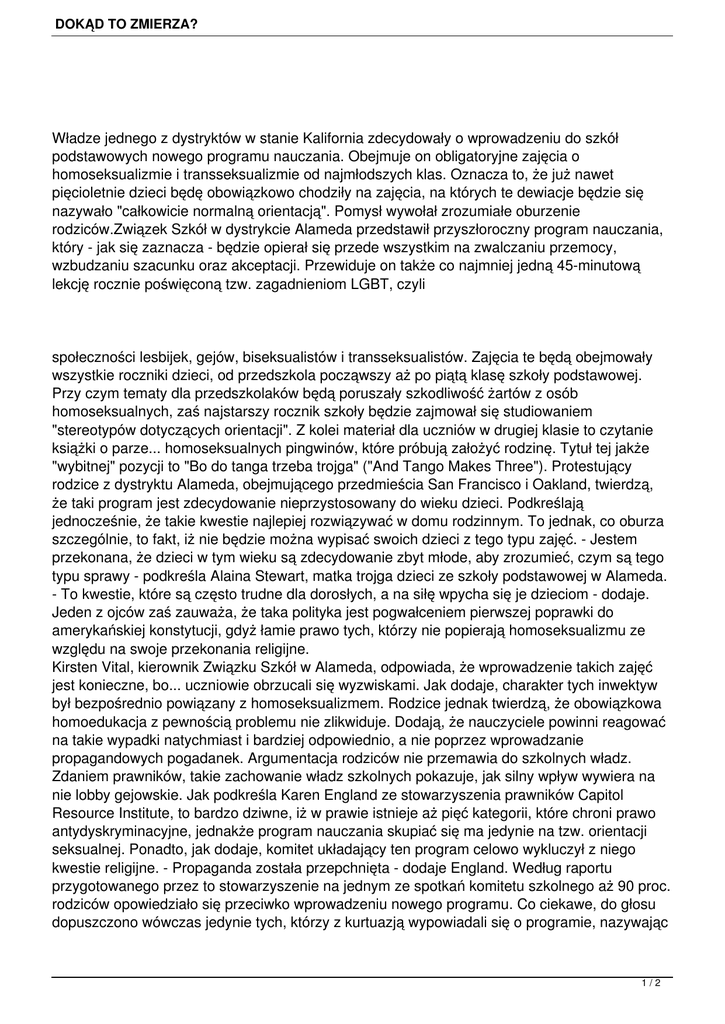 homoseksualizmie i transseksualizmie od najmłodszych klas. Oznacza to, że już nawet