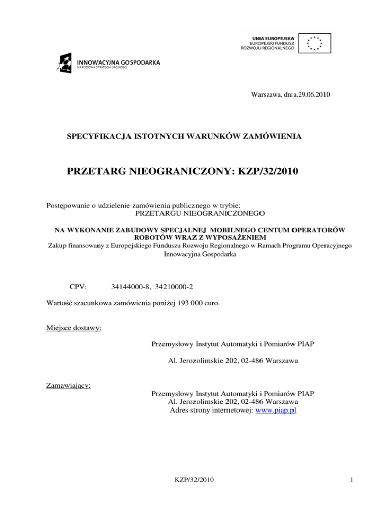 przetarg nieograniczony: kzp/32/2010
