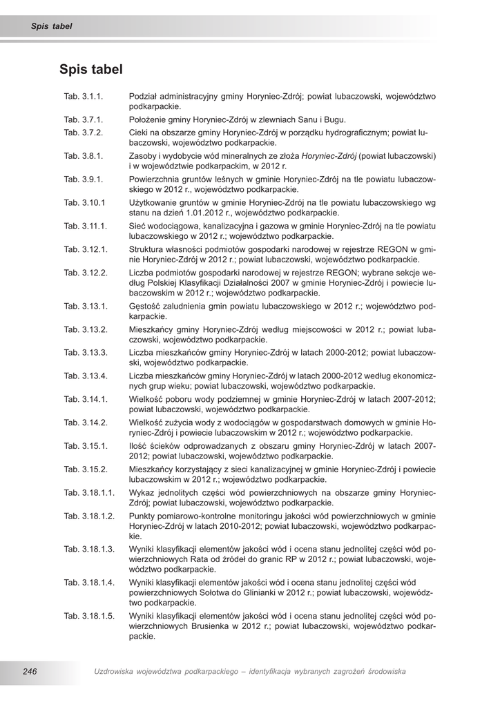 Spis tabel - Wojewódzki Inspektorat Ochrony Środowiska w