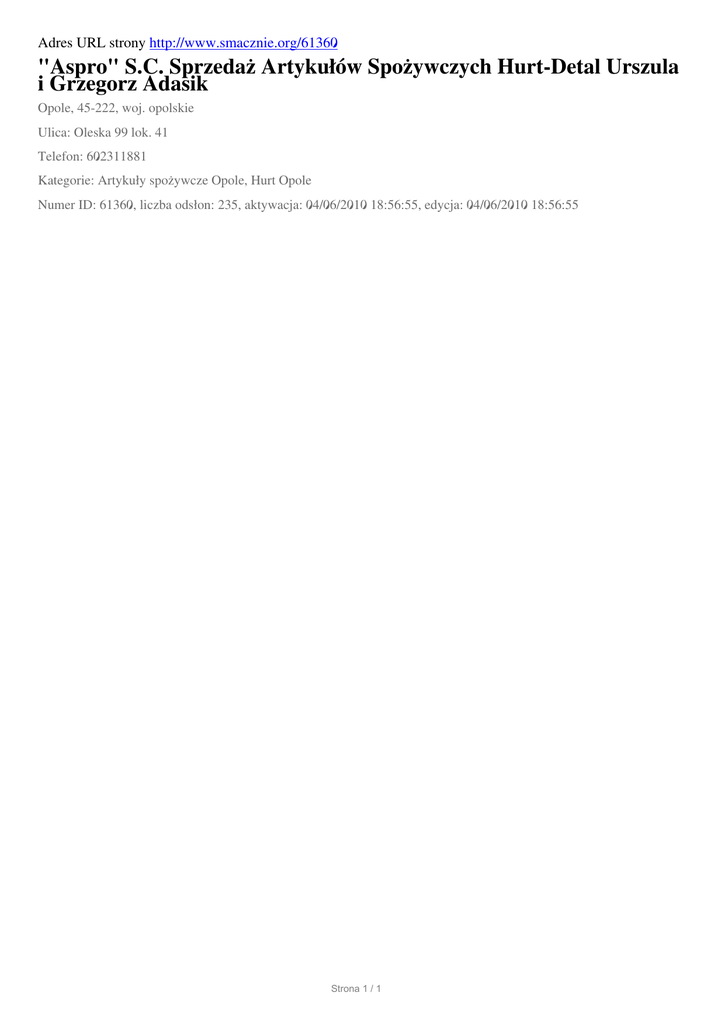 "Aspro" SC Sprzedaz Artykulow Spozywczych Hurt