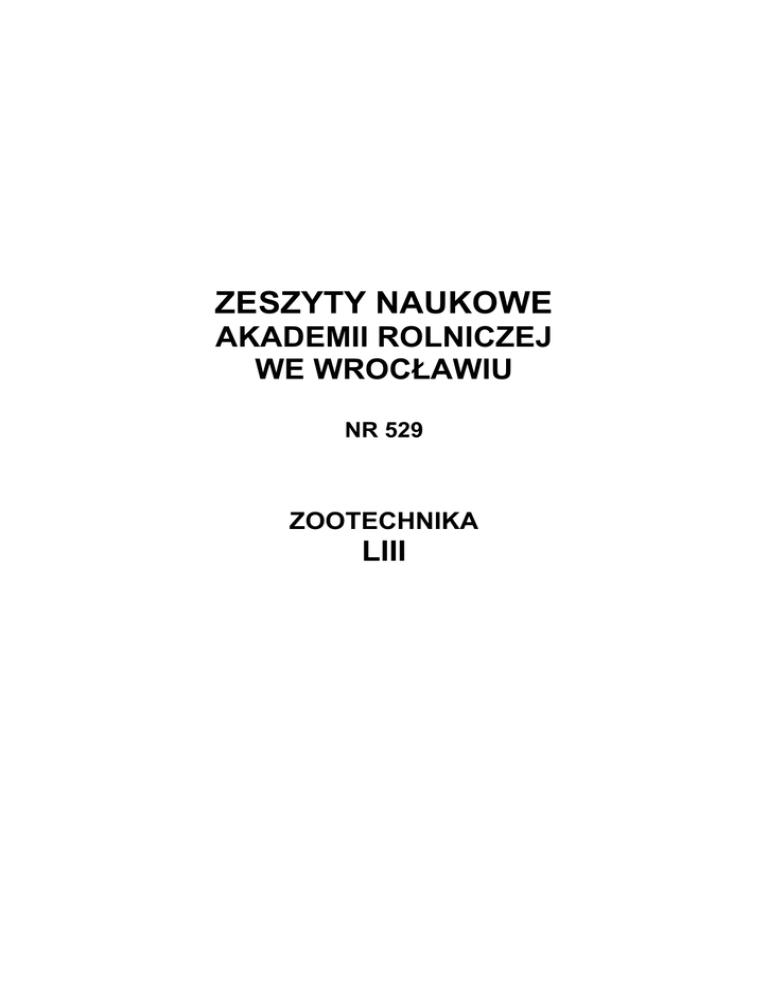 ZESZYTY NAUKOWE AKADEMII ROLNICZEJ WE WROC AWIU NR 529 ZOOTECHNIKA LIII ZESZYTY NAUKOWE AKADEMII ROLNICZEJ WE WROC AWIU NR 529 ZOOTECHNIKA LIII WROC AW 2005 Redaktor merytoryczny serii dr hab. Krystyn Chudoba Korekta JaninaSzyd owska Mgr El!bieta Winiarska-Grabosz Lamanie Halina Sebzda Projekt ok adki Gra!yna Kwiatkowska © Copyright by Wydawnictwo Akademii Rolniczej we Wroc awiu, Wroc aw 2005 ISDN 0867–7964 ISSN 0137–2017 WYDAWNICTWO AKADEMII ROLNICZEJ WE WROC"AWIU Redaktor naczelny – prof. dr hab. Andrzej Kotecki ul. Sopocka 23, 50-344 Wroc aw, tel. (71) 328–12–77 e-mail: [email protected] SPIS TRE#CI Str. 1. P. Gajewczyk, E. Madejek-!wi"tek, K. Kowalska – Warto#$ tuczna i rze%na #wi& pochodz"cych z ró'nych wariantów krzy'owania towarowego ............................................................................................................ 7 2. R. Haitlinger – Trzy nowe gatunki roztoczy (Acari: Prostigmata: Johnstonianidae, Microtrombidiidae) z Chin i Szwajcarii ................................. 13 3. R. Haitlinger – Trzy nowe gatunki roztoczy (Acari: Prostigmata: Microtrombidiidae, Trombidiidae) z Indonezji (Bali, Lombok) i opis nowego rodzaju ........................................................................................................ 23 4. R. Haitlinger, A. Jankowska – Stawonogi wyst(puj"ce na Rattus Norvegicus (Berkenhout, 1769) (Rodentia: Muridae) w Polsce ........................... 35 5. M. Janczak, G. Ku%niewicz, A. )wik a, J. Wo%niak, J. Ku%niewicz, P. Przysiecki – Wp yw stosowania zmodyfikowanej m"czki rybnej na ocen( pokroju i klasyfikacj( skór lisów polarnych ..................................... 45 6. M. Janczak, G. Ku%niewicz, J. Ku%niewicz, P. Przysiecki, A. )wik a, J. Wo%niak – Ocena skór i okrywy w osowej lisów polarnych otrzymuj"cych w dawce pokarmowej zmodyfikowan" m"czk( rybn" ....................... 51 7. M. Janczak, G. Ku%niewicz, J. Wo%niak, P. Przysiecki, J. Ku%niewicz, M. Ca ka – Wp yw stosowania zmodyfikowanej m"czki rybnej na ocen( wska%ników u'ytkowania rozp odowego lisów polarnych ......................... 61 8. D. Knecht – Rozwój grup producentów trzody chlewnej w Polsce ............ 67 9. D. Knecht – Rynek mi(sa wieprzowego w Polsce i UE ............................. 77 10. G. Kopij – Ptaki l(gowe zachodniej cz(#ci !ródmie#cia Wroc awia .......... 87 11. G. Ku%niewicz, M. Janczak, J. Wo%niak, J. Ku%niewicz, A. )wik a, M. Ca ka – Wp yw stosowania do karmy dla lisów polarnych zmodyfikowanej m"czki rybnej na ocen( ich przyrostów i zu'ycie pasz ................ 101 12. A. Pasternak, S. Krzywiecki, J. Iwanicka, S. Osi(g owski – Wp yw ilo#ci paszy tre#ciwej w dawkach w okresie oko oporodowym na wyniki produkcyjne i zdrowotno#$ krów ..................................................................... 109 13. M. Pawelska-Góral, M. Bohdanowicz-Zazula, K. Hajduk – Zwi"zek mi(dzy sk adem i niektórymi cechami oceny jako#ci mleka krów ............. 115 14. M. Senze – Kierunki zmian podstawowych parametrów limnologicznych w zbiorniku zaporowym S up ze szczególnym uwzgl(dnieniem poziomu trofii ............................................................................................................ 121 6 CONTENTS Page 1. P. Gajewczyk, E. Madejek-!wi"tek, K. Kowalska – Fattening and slaughter values of swine in dependency on different commercial crossbreeding ............................................................................................................... 7 2. R. Haitlinger – Three new species of mites (Acari: Prostigmata: Johnstonianidae, Microtrombidiidae) from China and Switzerland .................... 13 3. R. Haitlinger – Three new species of mites (Acari: Prostigmata: Microtrombidiidae, Trombidiidae) from Indonesia (Bali, Lombok), with description of a new genus ............................................................................. 23 4. R. Haitlinger, A. Jankowska – Arthropods occurring on Rattus Norvegicus (Berkenhout, 1769) (Rodentia: Muridae) in Poland ................ 35 5. M. Janczak, G. Ku%niewicz, A. )wik a, J. Wo%niak, J. Ku%niewicz, P. Przysiecki – The effect of modified fish meal application on appearance evaluation and pelt classification of polar foxes ............................................. 45 6. M. Janczak, G. Ku%niewicz, J. Ku%niewicz, P. Przysiecki, A. )wik a, J. Wo%niak – Pelt and hair cover evaluation in polar foxes fed on feed with addition of modified fish meal ............................................................ 51 7. M. Janczak, G. Ku%niewicz, J. Wo%niak, P. Przysiecki, J. Ku%niewicz, M. Ca ka – The effect of modified fish meal application on evaluation of reproductive factors in polar foxes .............................................................. 61 8. D. Knecht – Evolution producer groups of pigs breeding in Poland ........... 67 9. D. Knecht – Market of pork in Poland and UE ........................................... 77 10. G. Kopij – Breeding birds of the western part of the !ródmie#cie district of Wroc aw ................................................................................................. 87 11. G. Ku%niewicz, M. Janczak, J. Wo%niak, J. Ku%niewicz, A. )wik a, M. Ca ka – The effect of modified fish meal addition to feed on weight gain and feed consumption in polar foxes ................................................... 101 12. A. Pasternak, S. Krzywiecki, J. Iwanicka, S. Osi(g owski – Influence amount of concentrate in feed rations in nearcalving period on cows productivity effect and wellbeing ..................................................................... 109 13. M. Pawelska-Góral, M. Bohdanowicz-Zazula, K. Hajduk – Relationship between milk composition and some traits of quality estimation ............... 115 14. M. Senze – Changes in major limnological variables of the S up dam reservoir, with a particular reference to the reservoir’s trophic state .......... 121 Z