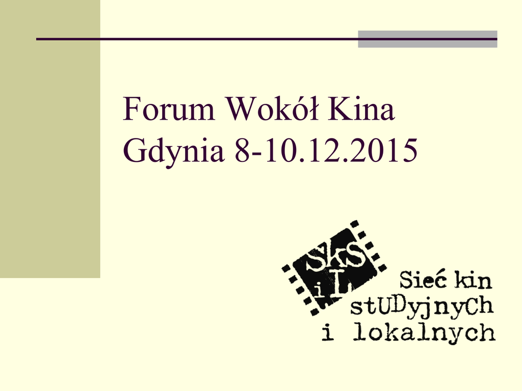Forum Wokół Kina Gdynia 8-10.12.2015 Plan spotkania – dzień 1 Reprezentacja prawna Relacja kino-dystrybutor Plan spotkania – dzień 2 Zmiany regulaminowe – praktyka funkcjonowania w 2015r. Działania wspólne: Informator X Pozyskiwanie funduszy Wsparcie finansowe usługi serwisowania sprzętu kinotechnicznego Reprezentacja prawna Współpraca z Towarzystwem „Ę” Spotkania plenarne SKSiL Jakość projekcji w kinach Promocja i Edukacja Działalność Klubów Filmowych Raportowanie Rada Kin Studyjnych i Lokalnych Wnioski zbiorcze 2015 Łącznie studyjne lokalne L. Zgłoszonych wniosków 66 43 23 L. Zgłoszonych przedsięwzięć 419 326 93 1 511 058 zł 1 224 894 zł 286 164 zł L. przedsięwzięć 272 212 60 Przyznane kwoty 599 850 zł 490 450 zł 255 164 zł Niewykorzystane kwoty 172 105 zł 11 kin 13 kin Wnioskowana kwota Współfinansowanie wydarzeń w kinach Wnioski Kwota 486 185 zł Imprezy 284 Edukacja 85 Wspólne przedsięwzięcia 2 8 000 zł 24 kina 172 105 zł Niewykorzystane kwoty (wnioski zbiorcze) Łącznie 334 000 zł 1 000 290 zł Wnioski zbiorcze i szczegółowe uwagi Wnioski szczegółowe należy zgłaszać co najmniej 21 dni przed rozpoczęciem przedsięwzięcia, nawet jeśli były zgłaszane we wniosku zbiorczym Zmiany we wniosku zbiorczym (zmiana lub nowe przedsięwzięcie) Każdy wniosek szczegółowy musi być rozliczony w terminie Kwoty przyznawane na wnioski szczegółowe (min. liczba imprez, wysokość wsparcia) Wspólne inicjatywy programowe aktywizacja wspólnej działalności programowej kin należących do SKSiL – wnioski na pojedyncze wydarzenia mogą składać grupy kin (5 lub więcej) Działania wspólne: Informator X Ankieta (odpowiedziało 26 kin). Liczba egzemplarzy (większość otrzymuje od 20 do 50 egzemplarzy, zapotrzebowanie jest większe) Sposoby dystrybucji wśród widzów: Dodawanie informatora do biletów Rozdawanie przed seansami Wśród członków DKF-ów Poprzez zaprzyjaźnione kawiarnie Wykładane w szkołach i przekazywane nauczycielom Informator jako narzędzie przydatna przy promocji bieżącego repertuaru ale także jako narzędzie pracy kiniarza. Działania wspólne: Pozyskiwanie funduszy Współpraca z firmą Trigonum: Informowanie o bieżących możliwościach dotacyjnych przez specjalną podstronę: http://www.kinastudyjne.pl/static/2/5291/pozyskiwanie-funduszy.html Analiza 17 zapytań z 15 kin Wsparcie w zakresie dotacji (2 chętne kina) Wsparcie finansowe usługi serwisowania sprzętu kinotechnicznego Opracowywane rozwiązanie formalno-prawne wsparcia kin w tym zakresie Przyjęte założenia: Zakres pomocy - usługi gwarancyjne Cena usługi negocjowana z dostawcami Pomoc wyliczana procentowo z uwzględnieniem potencjału finansowego kina (Kategorie A/B/C) Warunek uruchomienia programu to uzyskanie pozytywnej decyzji dotacyjnej z PISF Działania wspólne: Współpraca z Towarzystwem „Ę” Pilotaż w 2 kinach (Łowicz, Augustów) Diagnoza problemów i ich rozwiązanie Łowicz: Widoczność kina w przestrzeni miejskiej w Łowiczu Nietypowe rozwiązania zwiększające widoczność kina wypracowane wspólnie z młodymi widzami Augustów: Rozpoznanie seniorów jako nowej grupy widzów Działania wokół archiwów lokalnych i lokalnej historii kina Spotkania plenarne SKSiL New Cine Forum Termin: marzec 2016 Forum Wokół Kina Termin: maj/czerwiec 2016 Konferencja SKSiL Miejsce: Chodzież (Kino Noteć) Termin: 28-30 września 2016 Spotkania regionalne? Jakość projekcji w kinach Inicjatywa Stowarzyszenia Autorów Zdjęć Filmowych Certyfikaty jakości projekcji dla kin Regularne działania gwarantujące jakość projekcji Diagnostyka jakości technicznej projekcji Wspólne przedsięwzięcia promujące oglądanie filmów w najwyższej jakości projekcji Promocja Promocyjna rola wspólnych działań kin Komunikacja Grupa facebook Informowanie o wydarzeniach w kinie Proponowane akcje wspólne Policja (edukacja, pogotowie wychowawcze, 2 spoty) Unifrance Święto kina WBK (nowa formuła) Promocja c.d. Działania internetowe: Filmweb www.edukacjafilmowa.pl (materiały i gra) Filmowa Mapa Polski Gotowe materiały promocyjne Konkurs nakręć się na kino wizualizacja Termin: (grudzień 2015 – styczeń 2016) Cele: narzędzie promocji lokalnej pozyskiwanie wiedzy o widzach kino jako miejsce na mapie kulturalnej Partnerzy Promocja c.d. Kampania „Film w kinie” kampania informacyjno-społeczna współpraca ze znanymi twórcami Kino dostępne Informacja dla widza o akcjach kin (w tym tanie poniedziałki) Ułatwienie sprzedaży biletów we wszystkich kinach SKSiL (integracja istniejących rozwiązań) Nowoczesny portal z geolokalizacja i aplikacja internetową Szukamy nazwy Filmowa Mapa Polski Promocja c.d. Marka Sieci Kin Studyjnych i Lokalnych Definicja Konsultacje Działania długofalowe Badanie widza Zmiana logo Karta Widza Kin Studyjnych Działania konkurencji Kluby filmowe Zasady Minimum 10 spotkań (prelekcja+seans+dyskusja) Współorganizacja(nie dotacja, 50% kosztów) Zaliczka w wysokości 50% udziału FN Koszty kwalifikowane:kopie, tłumaczenia, prelekcje, goście Ocena na podstawie sprawozdania za zeszły rok (min. historia rocznej działalności) Informacje na www.fn.org.pl Nabór wniosków Termin: styczeń/luty 1 sesja na cały rok Raportowanie SKSiL Regularne raportowanie (cotygodniowe!) http://raportysksil.fn.org.pl Raport półroczny lipiec-grudzień Raportowanie wydarzeń w kinach Uaktualnianie danych kin (zmiany osobowe i techniczne) Współpraca z boxoffice.pl (od 1 lipca) Boxoffice 01.07-30.11.15 Lp. Tytuł polski 45 lat Sens życia oraz 2 jego brak W objęciach 3 węża 4 Magical Girl 1 Reżyser Dystrybut or Data premiery Liczb Liczba Widzów a kin seansów Andrew Haigh Solopan 2015-09-25 63 767 8 969 Gabor Reisz Aurora Films 2015-07-10 63 849 7 479 Ciro Guerra Against Gravity 2015-11-13 22 270 5 547 Carlos Vermut Gutek Film 2015-06-12 47 443 5 574 5 Dzikie historie Damian Szifron Gutek Film 2015-01-02 27 376 6 