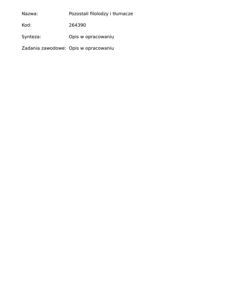 Nazwa: Pozostali filolodzy i tłumacze Kod: 264390 Synteza: Opis w