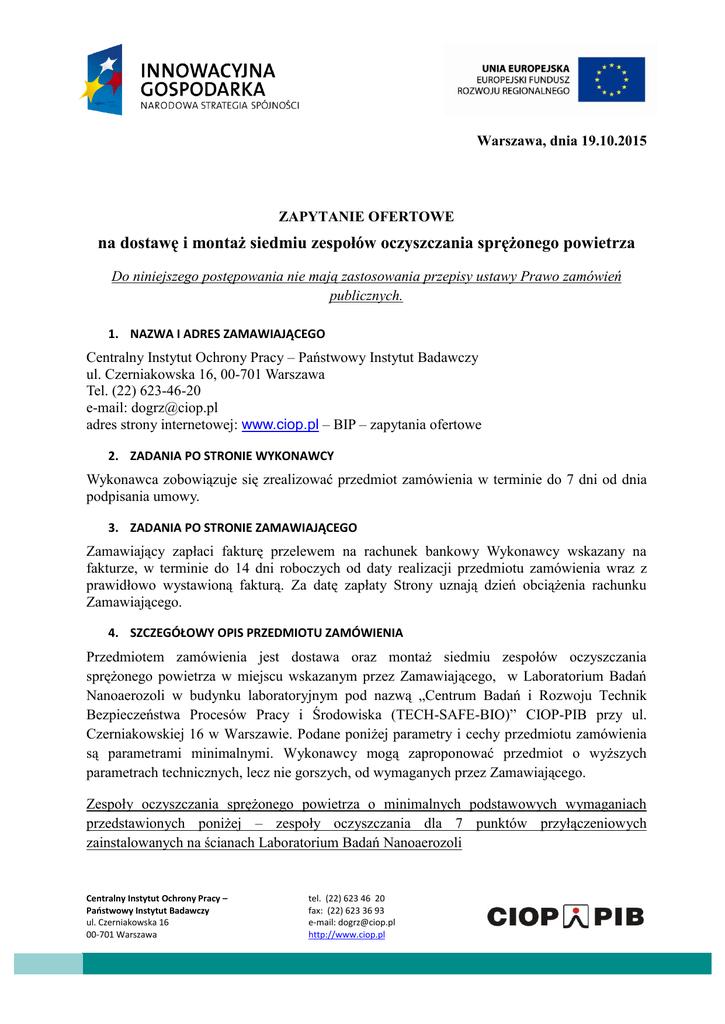 Zapytanie ofertowe - Centralny Instytut Ochrony Pracy