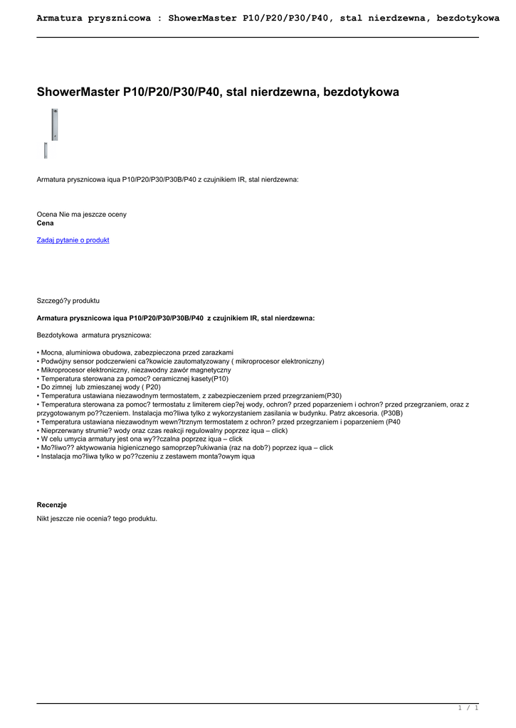 Armatura prysznicowa : ShowerMaster P10/P20/P30/P40, stal