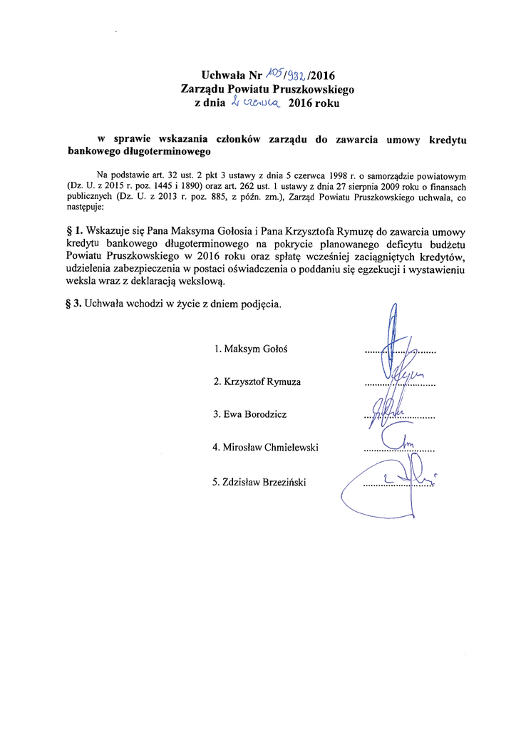 pobierz uchwały – 105 posiedzenie Zarządu