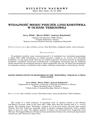 ocena wydajności miodowej pszczół linii Kortówka