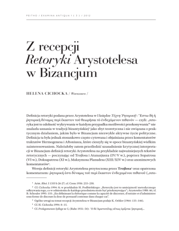 Z recepcji Retoryki Arystotelesa w Bizancjum