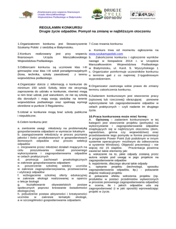 REGULAMIN KONKURSU Drugie życie odpadów. Pomysł na