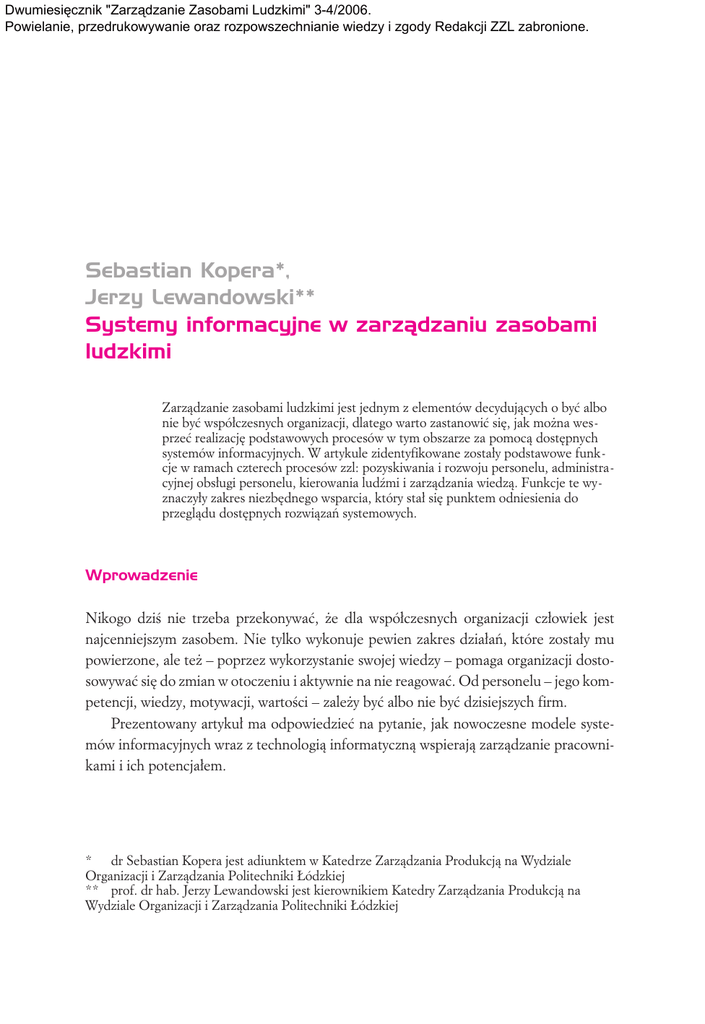 Sebastian Kopera*, Jerzy Lewandowski** Systemy
