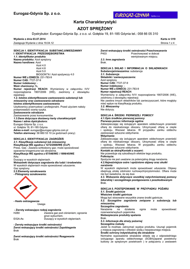 Azot sprężony - EuroGaz Gdynia Sp. z oo