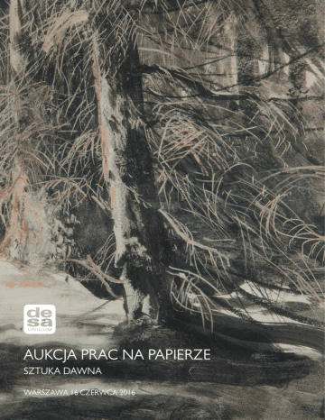 aUkcJa Prac na PaPIerze SztUka dawna warSzawa 16 czerwca 2016 Aukcja Prac na Papierze Sztuka dawna 16 czerwca 2016 (czwartek) godz. 19 WYSTAWA OBIEKTÓW 6 – 16 czerwca 2016 PONIEDZIaŁEK – PIĄTEK W GODZINACH OD 11 DO 19 SOBOTA W GODZINACH OD 11 DO 16 MIEJSCE AUKCJI i wystawy DOM AUKCYJNY DESA UNICUM UL. MARSZAŁKO WSKA 34–50 WARSZAWA zbysław Marek Maciejewski, „Ogród w tarnowie”, 1993 r. ArtOutlet Aukcja Sztuki współczesnej 23 czerwca (czwartek) 2016 r., godz. 19 wystawa obiektów: 8 – 23 czerwca 2016 r. dom Aukcyjny deSA unicum ul. Marszałkowska 34-50,warszawa tel. 22 584 95 34, www.desa.pl indeks Baranowski Jerzy 20 Lewitska Sonia 72 Berezowska Maja 45-48 Lindemann Emil 39 Bilińska-Bohdanowiczowa Anna 3 Malczewski Rafał 49-50 Brandt Józef 27 Małachowski Soter Jaxa 68 Chmieliński Władysław 37-38 Marcoussis Louis 51 Chwistek Leon Kazimierz Antoni 57 Mehoffer Józef 29 Cieślewski Tadeusz (ojciec) 33, 35 Muter Mela 5 Cybis Jan 71 Nartowski Tadeusz 41 Dziemański Stanisław 77 Nehring Maciej 30-31 Dzierzbicki Antoni Eugeniusz 18-19 Norblin de la Gourdaine Jan Piotr 8 Ejsmond Stanisław 32 Płoński Michał 28 Epstein Henryk 4, 59 Pomian Wolski Stanisław 21 Fabijański Stanisław 65 Poustochkine Bazyli 76 Fałat Julian 11-13 Radzikowski Walery Eliasz 24 Flisak Jerzy 84 Rozwadowski Zygmunt 40 Geppert Eugeniusz 52 Ryszkiewicz Józef 64 Gerson Wojciech 7 Sawiczewski Stanisław 55-56 Gnatowski Jerzy 69 Seifert Dawid 83 Halicka Alicja 60 Setkowicz Adam 44 Harasimowicz Marceli 67 Stachowicz Władysław 73 Hofman Wlastimil 85-87 Stępski Wiktor 70 Iwan Friedrich 14 Stryjeńska Zofia 82 Jabłczyński Feliks 15 Studnicki Juliusz 61 Kirchner Włodzimierz 22 Styka Jan 25-26 Klimek Ludwik 16 Szczerbiński Marian 42 Koniewicz Tadeusz 74 Tetmajer-Naimska Jadwiga 34 Kosiński Kajetan 43 Trzebiński Marian 36 Kraśnik Zbigniew 75 Weyssenhoff Henryk 6 Krynicki Nikifor 78-81 Witkiewicz (Witkacy) Stanisław Ignacy 1-2 Kubicki Stanisław 53-54 Wyczółkowski Leon 9-10 Kulisiewicz Tadeusz 62-63, 66 Zucker Jakub 17 SALON WYSTAWOWY MARCHAND DZIAŁ PRZYJĘĆ DOM AUKCYJNY I GALERIA DOM AUKCYJNY I GALERIA Marszałkowska 34-50, 00-554 Warszawa tel. 22 584 95 34, [email protected] pon.-pt. 11-19, sob. 11-16 SALON WYSTAWOWY MARCHAND Pl. Konstytucji 2, 00-552 Warszawa tel. 22 621 66 69, [email protected] pon.-pt. 11-19, sob. 11-16 DZIAŁ PRZYJĘĆ Marszałkowska 34-50, 00-554 Warszawa tel. 22 584 95 30, [email protected] pon.-pt. 11-19, sob. 11-16 kasa: pon.-pt. 11-17 GALERIA BIŻUTERII Nowy Świat 48, 00-363 Warszawa tel. 22 826 44 66, [email protected] pon.-pt. 11-19, sob. 11-16 wyceny: wt. 11-15, czw. 15-19 DZIAŁ ROZLICZEŃ Marszałkowska 34-50, 00-554 Warszawa tel. 22 554 95 23, kasa: pon.-pt. 11-17 OKŁADKA FRONT poz. 10 Leon Wyczółkowski, Park w Gościeradzu, 1927 r. II OKŁADKA poz. 32 Stanisław Ejsmond, Chryzantemy • STRONA II poz. 5 Mela Muter, Pejzaż z Villeneuve-les-Avignon, lata 40. XX w. IV OKŁADKA poz. 11 Julian Fałat, Kwitnące drzewa Aukcja Prac na Papierze • ISBN 978-83-64871-94-8 • Kod aukcji 419APP032 • Nakład 2 500 egzemplarzy Koncepcja graficzna Monika Wojnarowska • Opracowanie graficzne Andrzej Chojnacki • Zdjęcia Marcin Koniak Rys. arch. wg. B. Garliński, Architektura polska 1950-1951,Warszawa 1953, s. 70 Druk ArtDruk Zakład Poligraficzny, ul. Napoleona 4, 05-230 Kobyłka, tel.: (+48 22) 786 08 30, tel.: (+48 22) 786 04 05, fax: (+48 22) 786 89 04, www.artdruk.com JULIUSZ WINDORBSKI Prezes Zarządu tel. 22 584 95 25 [email protected] JAN KOSZUTSKI Członek Zarządu tel. 22 584 95 30 [email protected] MONIKA MATUSEWICZ Asystentka Zarządu tel. 22 584 95 25, 795 121 557 [email protected] KSIĘGOWOŚĆ DZIAŁ MARKETINGU Małgorzata Kulma, Główna Księgowa tel. 22 584 95 20, [email protected] Jacek Powałka, Dyrektor Marketingu tel. 501 606 208, [email protected]. Emilia Kuczewska, Księgowa tel. 22 584 95 21, [email protected] Urszula Przepiórka, Rozliczenia tel. 22 584 95 23, [email protected] DZIAŁ PRAWNY I HR Krystian Owczarek, Radca Prawny tel. 22 584 95 29, [email protected] Joanna Kotomska, Zastępca Dyrektora Marketingu tel. 22 584 95 25, [email protected] Public Relations Business & Culture Wioleta Żochowska, tel. 793 919 129, [email protected] DZIAŁ TECHNICZNY DZIAŁ IT Piotr Gołębiowski, Koordynator Projektów IT tel. 502 994 225, [email protected] Kacper Tomaszkiewicz, Kierownik tel. 795 122 708, [email protected] Karol Parzyszek, Specjalista Karol Kosowski, Specjalista KONTA BANKOWE Bank Pekao S.A., Swift: PKOP PL PW PLN: 27 1240 6292 1111 0010 6772 6449 EURO: 58 1240 6292 1978 0010 6772 6191 USD: 78 1240 6292 1787 0010 6772 6263 DESA UNICUM S.A. ul. Marszałkowska 34-50, 00-554 Warszawa, tel. 22 584 95 25, fax 22 584 95 26, e-mail: [email protected] NIP: 525-00-04-496 • REGON: 012669260 Spółka zarejestrowana w Sądzie Rejonowym dla m. st.Warszawy XII Wydział Gospodarczy KRS0000596761 o kapitale zakładowym: 7 728 100 zł. DZIAŁ PRZYJĘĆ DZIAŁ SZTUKI WSPÓŁCZESNEJ IZA RUSINIAK Dyrektor Działu [email protected] 22 584 95 38 BarBara Rybnikow Specjalista [email protected] 22 584 95 39 KAROLINA ŁUŹNIAK-MARCHLEWSKA Specjalista [email protected] 22 584 95 39 MAŁGORZATA SKWAREK Specjalista [email protected] 22 584 95 39 Konrad Niemira Specjalista [email protected] 22 584 95 38 DZIAŁ SZTUKI DAWNEJ JOANNA TARNAWSKA Dyrektor Działu [email protected] 22 584 95 38 DZIAŁ SZTUKI MŁODEJ I NAJNOWSZEJ ARTUR DUMANOWSKI Specjalista [email protected] 22 584 95 30 Martyna Merkis Specjalista [email protected] 22 584 95 30 BIURO PRZYJĘĆ MAŁGORZATA LEMANEK Dyrektor Biura [email protected] 22 584 95 31 MILENA LUTOMIRSKA Specjalista [email protected] 22 584 95 30 STUDIO FOTOGRAFICZNE MARCIN KONIAK Fotograf [email protected] 22 584 95 31 ALEKSANDRA BRZOZOWSKA Fotoedytor [email protected] 22 584 95 31 ELŻBIETA KOPEĆ Specjalista [email protected] 22 584 95 30 DZIAŁ SPRZEDAŻY AGATA SZKUP Dyrektor Działu Sprzedaży [email protected] +48 6