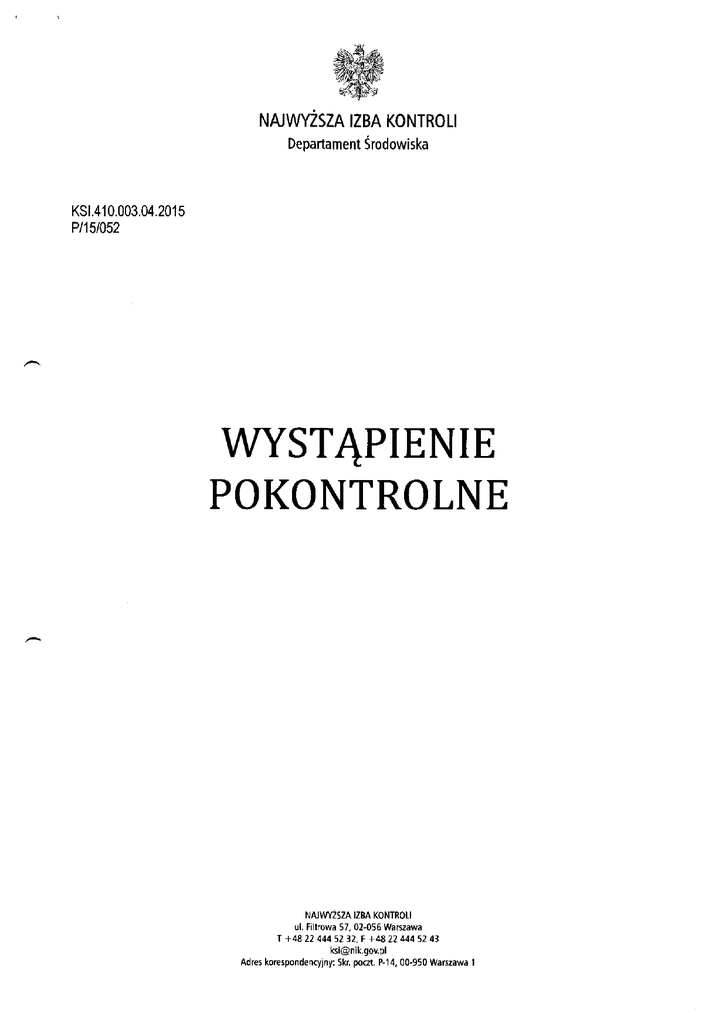 NAJWYZSZA IZBA KONTROLI Departament Srodowiska KSt,410.003.M.2015 Pt15t052 WYSTAPIENIE POKONTROLNE NAIWYZSZA IZBA KONTROTI ul. Filtrowa 57, 02-056 Wa6zawa I + 48 22 4M 52 32, F +48 22 444 52 43 [email protected] Adres korespondenqjny: 5k poczt. P-14,00-950 Warszawa I l. Dane identyfikacyjne kontroli Numer i tytul kontroli Jedno$ka przeprcwadzajqca P1151052 - Pzeprowadzanie strategicznych ocen oddzialywania na Srodowisko pzez organy jednostek samozqdu terytorialnego Najwy2sza lzba Kontroli Deoartament Srodowiska kontrolQ Konttolerzy 1. Emilia Dolecka, inspektor k.p., upowa2nienie do kontroli nr 95072 z dnia 29 czenwca 2015 r. 2, Dariusz Lyszkiewicz, gl6wny specjalista k,p., upowa2nienie do kontroli nr 95068 zdnia 25 czeruca2015 r. (dow6d: akta kontroli str. 1-4) Jednostka Rontrclowana Kiercwnik jednostki Urzqd Miasta Wloclawek, Zielony Rynek 11/13, 87-800 Wloclawek, zwany dalej Marek Wojtkowski, Prezydent Miasta Woclawek, zwany dalej kontrolowanej "Prezydentem "Uzgdem". Miasta". (dow6d: akta kontrolistr. 345) ll. Ocena kontrolowanej dzialalno6ci Najwyzsza lzba Kontroli ocenia pozytywnie, mimo stwierdzonych nieprawidtowo5cil, realizacjQ ptzez Prezydenta Miasta Wloclawek, w latach 2011-2014 zadan wynikajqcych z pzepis6w ustawy z dnia 3 pa2dziernika 2008 r. o udostgpnianiu informacji o Srodowisku ijego ochronie, udziale spoleczehstwa w ochronie Srodowiska oraz ocenach o oddzialywania na Srodowisko2 (zwanej dalej ,,uuio6") w zakresie: - ptzygotowania i pzeprowadzania strategicznych ocen oddzialywania na Srodowisko (dalej ,,soos"), prowadzenia publicznie dostepnego wykazu danych informacje o Srodowisku ijego ochronie (dalej "PDWD"), soo6. Uzasadnienie oceny og6lnej o dokumentach zawienjqcych w szczeg6lno6ci dotyczEcych PowyzszE ocenq uzasadnia pzeprowadzenie soos, w tym uwzglgdnienie udzialu spoleczehstwa, projektdw miejscowych plan6w zagospodarowania pzestzennego (zwanych dalej lub ,,miejscowych plan6w^), Prognmu ochrony Srodowiska dla "mpzp" miasta Wodawek na lata 2014-2017 z perspektywq na lata 2018-2021, Strategii rozwoju miasta Wloclawek 2020+, Stalegii rozwoju niejskich obszar6w funkcjonalnych Wloclawka na lata 2014 2020 oraz prowadzenia publicznie dostgpnego wykazu danych o dokumentach zawierajEcych informacje o Srodowisku i jego ochronie, dotyczqcych sooS (zwanego dalej ,,PDWD"). w szczeg6lnoSci Stwierdzone nieprawidlowo6ci polegaly na: - niepzedlo2eniu Generalnemu Dyrektorowi Ochrony Srodowiska informacji o prowadzonych soo6 za rok 2010 oraz niewykazaniu pzeprowadzenia soos d/a Strategii rozwoju miasta Whclawek 2020+ w inlomaqi za 2014 r .; r Najwyzsza lzba Konlroli slosuje 3-slopn owE skalg oceni pozyiywna, pozylywna mimo stwierdzonych 2 nieprawidlowosci, negatywna. Dz.U. 2 2013 r., WL 1235,2 p62n. zm. niewystarczajqcym zabezpieczeniu interes6w Zamawialqcego umowach na opracowanie prognoz oddzialywania na Srodowisko; w siedmiu badanych niepzekazaniu pzyjgtych dokument6w poddanych soos, organom wlasciwym w sprawach opiniowania i uzgadniania w ramach soos ; o pzyjeciu siedmiu badanych mpzp pzez: ogloszenie w siedzibie Uzedu oraz w prasie o odpowiednim do rodzaju niepodaniu do publicznej wiadomo6ci informacji dokumentu zasiggu; niezamieszczeniu w kart informacyjnych publicznie dostepnym wykazie danych o dokumentach zawierajqcych informacje o Srodowisku ijego ochronie; p62nym zamieszczeniu kart informacy.inych w publicznie dostepnym wykazie danych o dokumentach zawierajqcych informacje o Srodowisku i jego ochronie. lll. Opis ustalonego stanu faktycznego 1. Dzialania zuriqzanie z przygotowaniem do pzeprowadzania soos Opis stanu faktycznego W Uzqdzie Miasta Wloclawek zadania zwiqSane z opracowywaniem oraz dokonywaniem zmian dokument6w wymienionych w art. 46 i 47 uuioS, realizowaly, w okresie objqtym kontrol4 nastepujEce wydzialy: 1) Wydzial Urbanistyki i Architektury; 2) Wydziat Rozwoju i Projekt6w Europejskich 3) Wydzial Rozwoju Miasta - - do 31 .08,2011 r.; od 01.09.20'1 1 r.; 4) Wydzial Srodowiska i Rolnictwa 5) Wydzial Gospodarki Komunalnej i Srodowiska od 01 .09.201 1 r. do 22.01.2013 r.; 6) Wydzial Gospodarki Komunalnej 7) Wydzid Srodowiska - - do 31.08.201 1 r.; -od od 23.01.2013 23.01.2013 r.; r. (dow6d: akta kontroli str, 494-498a) ObowiqTki wynikajqce z pzepis6w wskazanej ustawy, zwiqzane z pzeprowadzaniem soo6 i projeK6w dokument6w, o ktorych mowa w art. 46 art. 47 tej ustawy, nie zostaly wymienione wprost w Regulaminie organizacyjnym Uzgdu Miasta Woclawek oraz w ngulaminach poszczeg6lnych kom6rek organizacyjnych Urzedu. (dow6d: akta kontroli str. 314-490,494-495, 498a, 586-672, 757-759) Sekretaz Miasta wyja6nila, i2 ,(...) ze wzglqdu na duzq ilosi zadah realimwanydt pnez jednoski samorz$owe, w szczq6lnoSci bQdqce miastami na prawach powiatu, oraz czytelnoSci pnedmiotowych dokunent6w konieczno9' zrchowania przejzysto*ci organizacyjnycll, zarowno regulamin orgmiznyjny jak i regulaminy wewnqtnne wydzial6w UnQdu charakteryzujE siQ okre'lonym stopniem og'lno$ci, polegaiqcym na wskazaniu zadah wspolnych jednosfek organincyjnych Uzqdu oraz zadah pnypisanych Wqcznie wfaficiwm, poszczegolnym jednoskom, z pominiQciem szueg6lowydt dzidah lub ah. Pzeprowadzanie strategicznych o@n czwno$ci Wonwanych w ramach tych i z oddziawania na Srodowisko nie jest zdanian sanym w sobie, lecz stmowi element Nocedury opracowania projekt6w dokument6w merytorycznych w r6Lnorodnych obszarach dzialalnoici planistycznej i strategicznej miasta. (...) Tym sanrym wszystkie czynnoSci zwiqzane z soof, w tyn: uzgadnianie z Regionalnym Dyrektorem Ochrony Srodowiska koniecznofici ich wykonania lub odstqpienia od ich pzeprowadzania, pzekazywanie o prowadzonych sooS, Generalnemu Dyrektorowi Ochrony Srodowiska informacji prognozq poddawanie proiekt6w dokument^w wraz z oddzialwania na Srodowisko opiniowaniu pzez wlaSciwe organy ttp , wykonujq w Ungdzie Miasta Wodawek kom6*i organiz*yjne wlaSciwe do realizrcji projekt6w dokument6w (...)" . (dow6d: akta kontroli str. 494498a) Zadania zwiqzane z opracowywaniem projekt6w doku