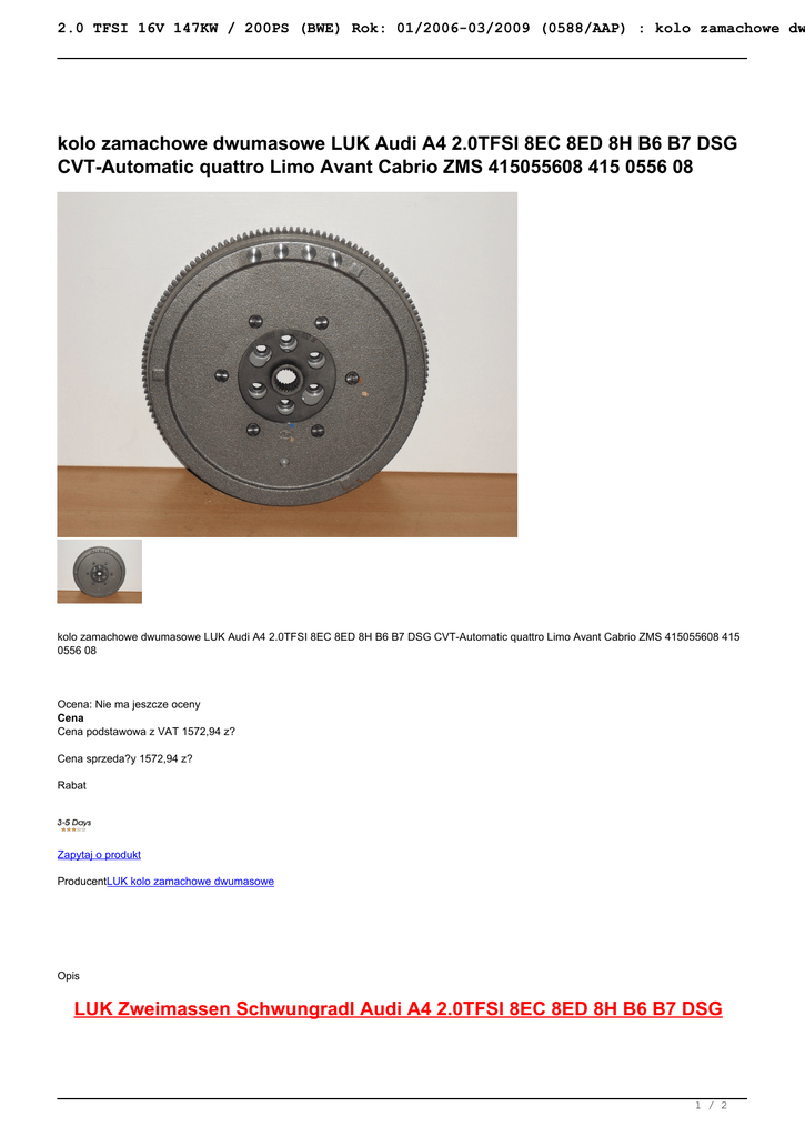 kolo zamachowe dwumasowe LUK Audi A4 2.0TFSI 8EC 8ED 8H